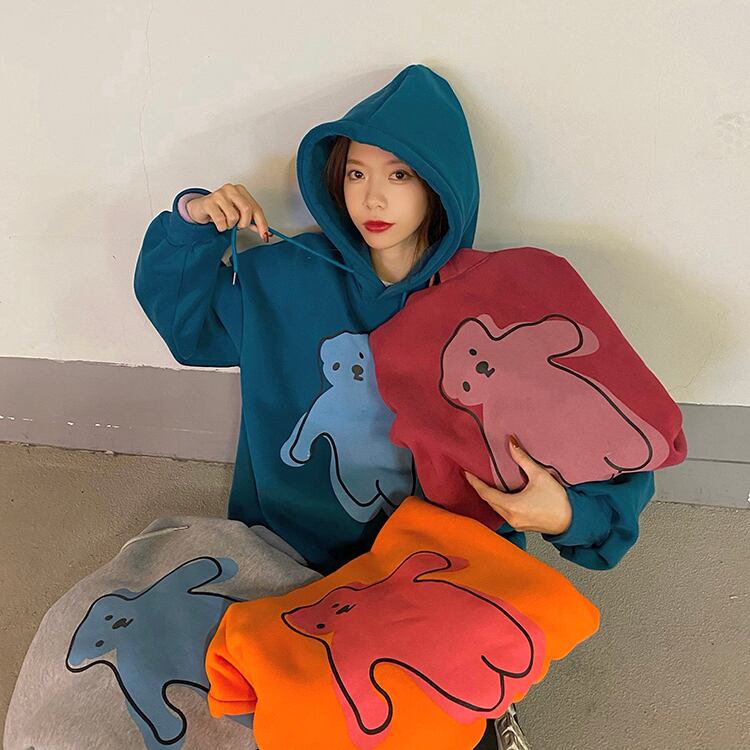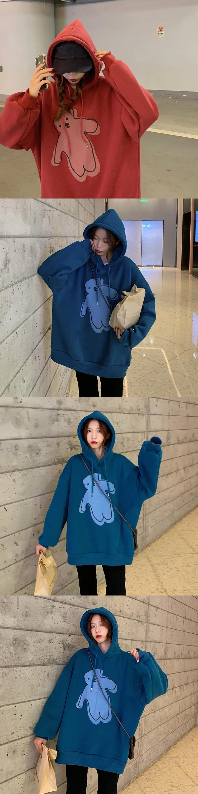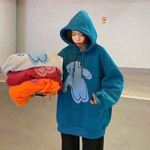スプリングオータムベルベットプリント柄ルーズフードセーター レディース ロング 大きめサイズ 春物 秋物 misskkl54617997539