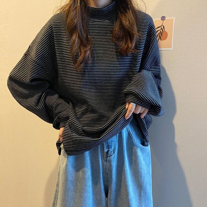 スプリングオータムカラールーズスタイルTシャツ レディース ロング 春物 秋物 ストライプ misskkl21000167676