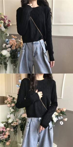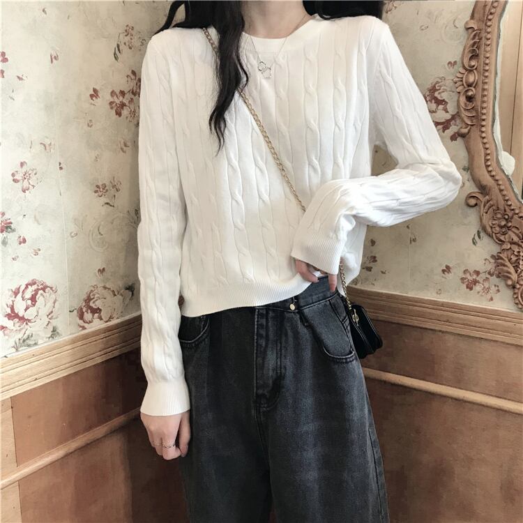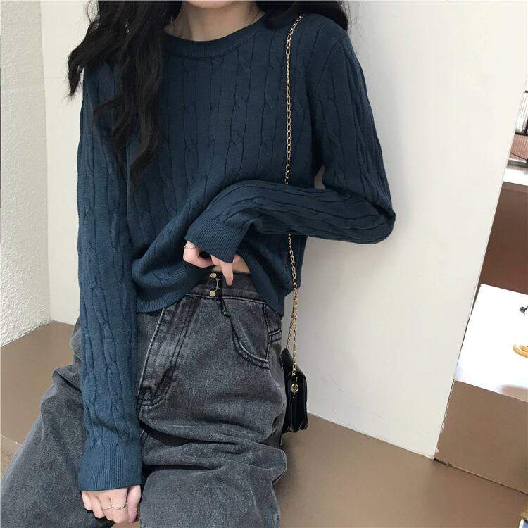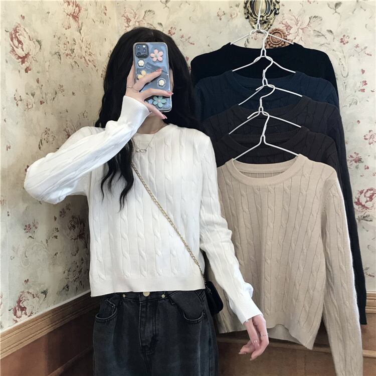 スプリングオータムルーズショートソリッド カラーラウンドネックセーター トップス ロング 春物 秋物 Oネック ソリッドカラー misskkl51478879029