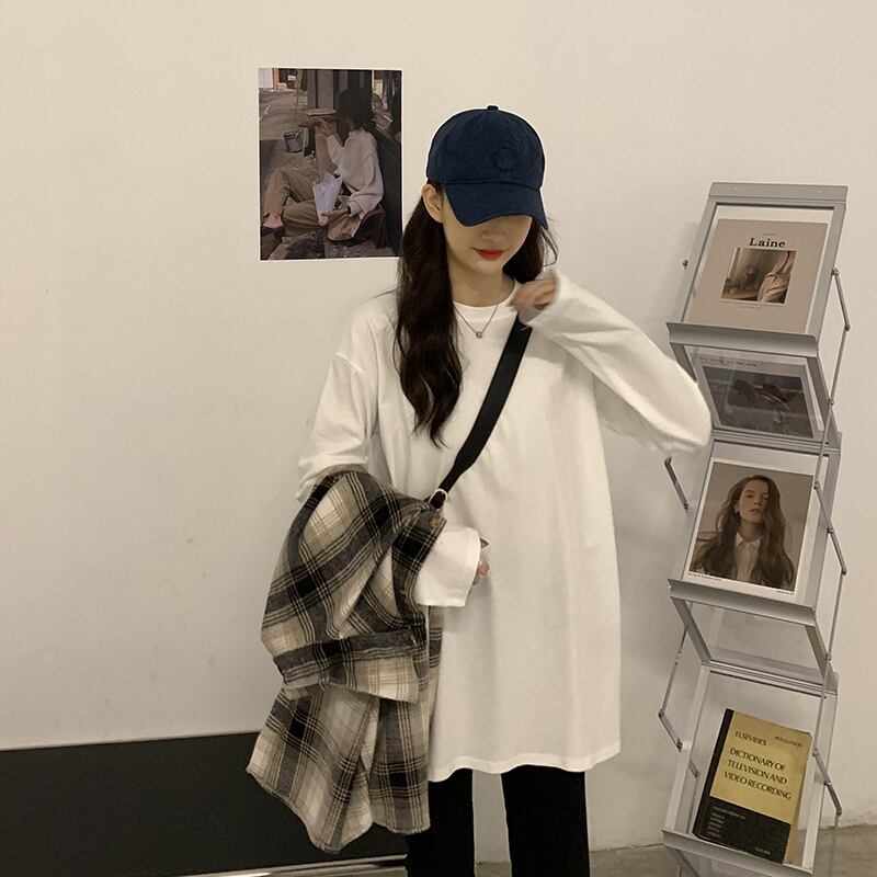 ホワイトTシャツ シャツ トップス スプリングオータムルーズ ロング 春物 秋物 misskkl15965276215