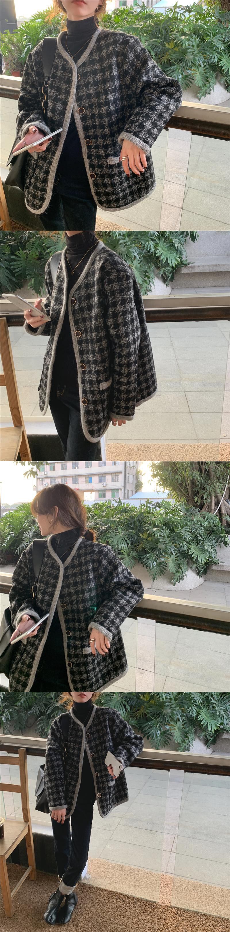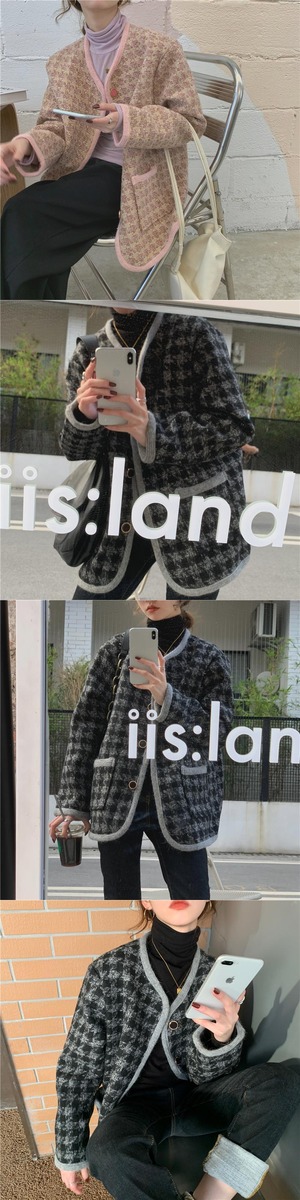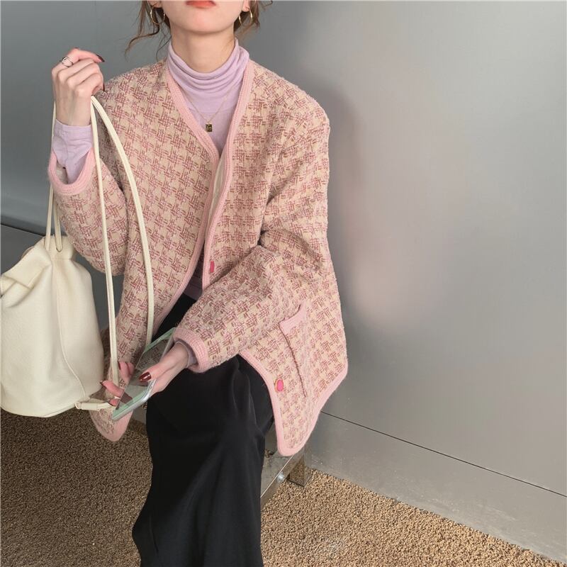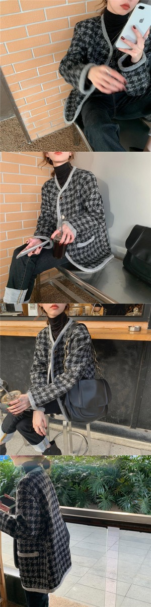 スプリングオータムスタイルツィード格子柄ルーズジャケット ロング 春物 秋物 misskkl75689471826