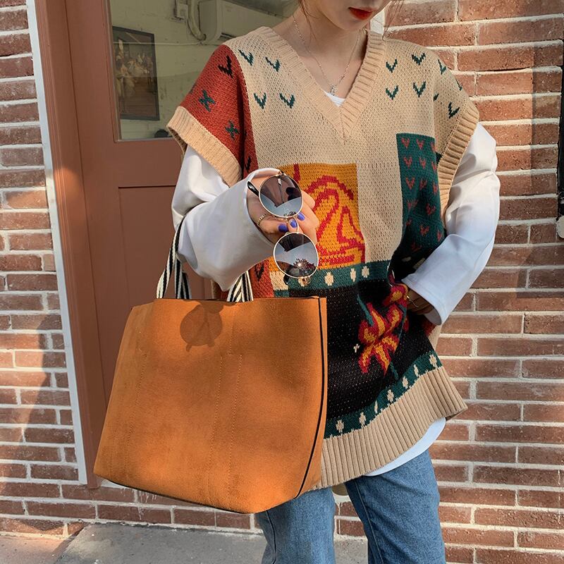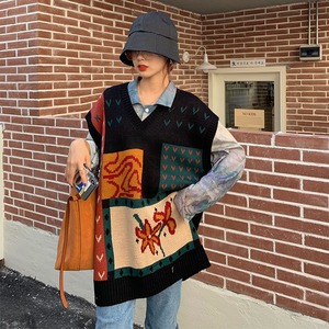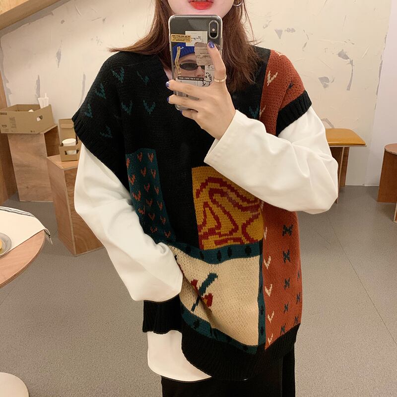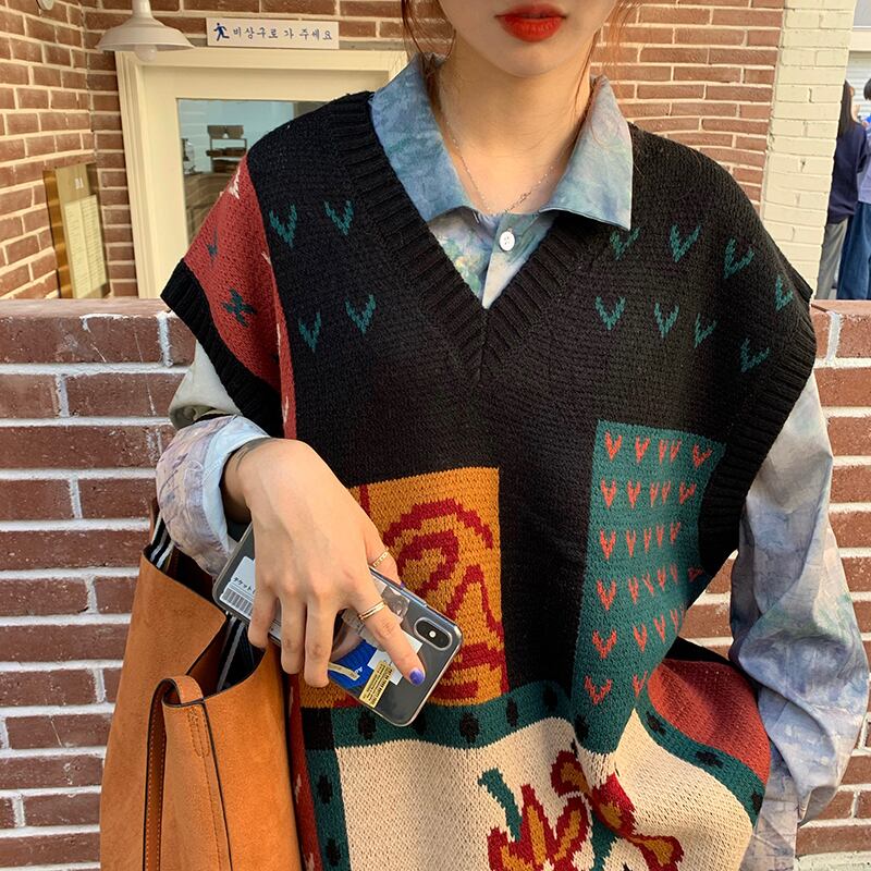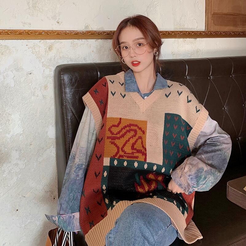 スプリングオータムスタンダードカラールーズスタイルVネックセーター レディース ロング レトロ 春物 秋物 misskkl62520247492