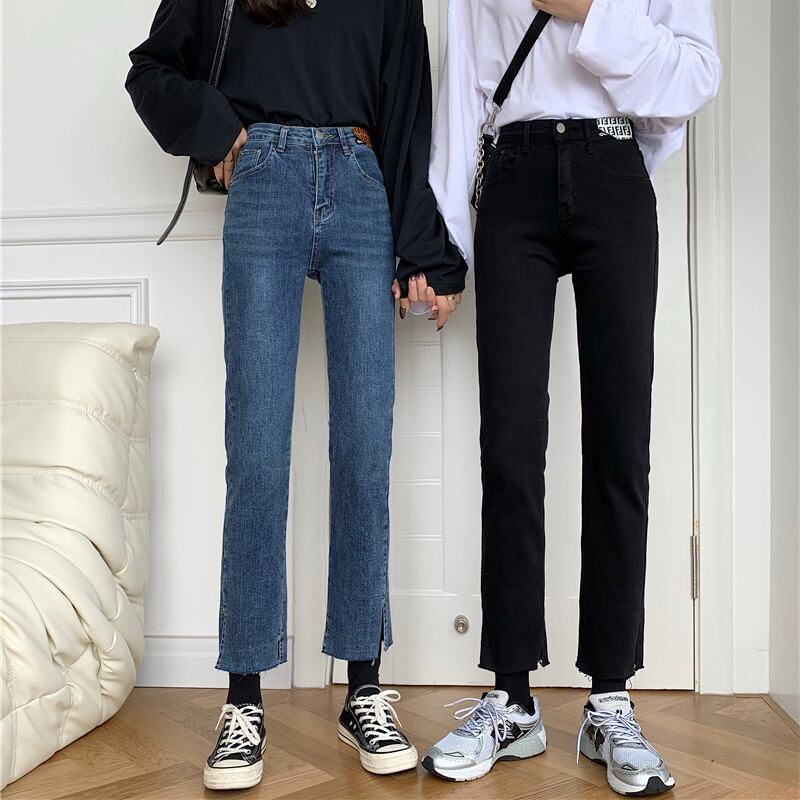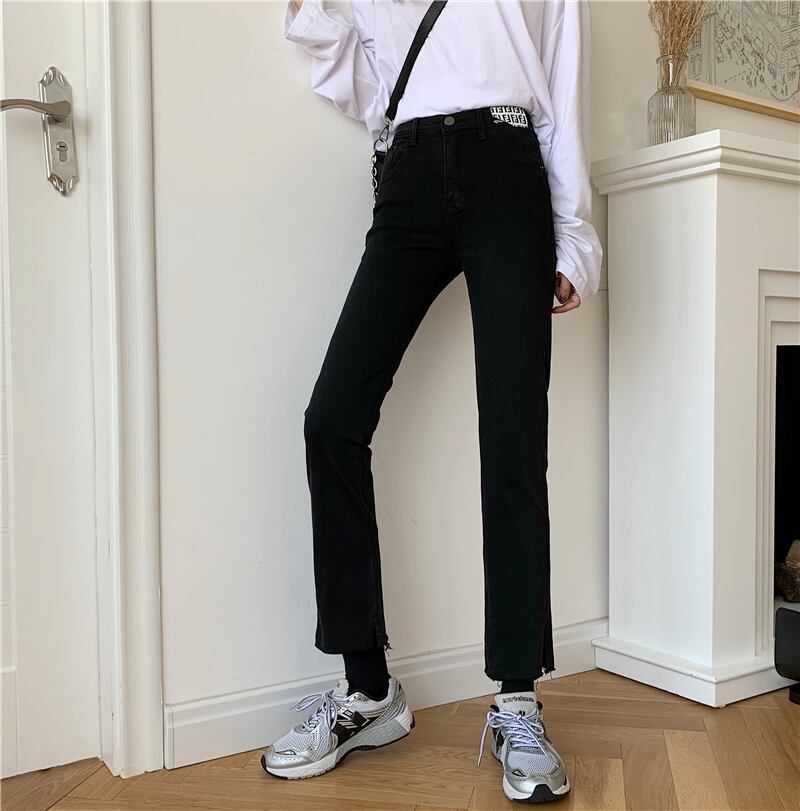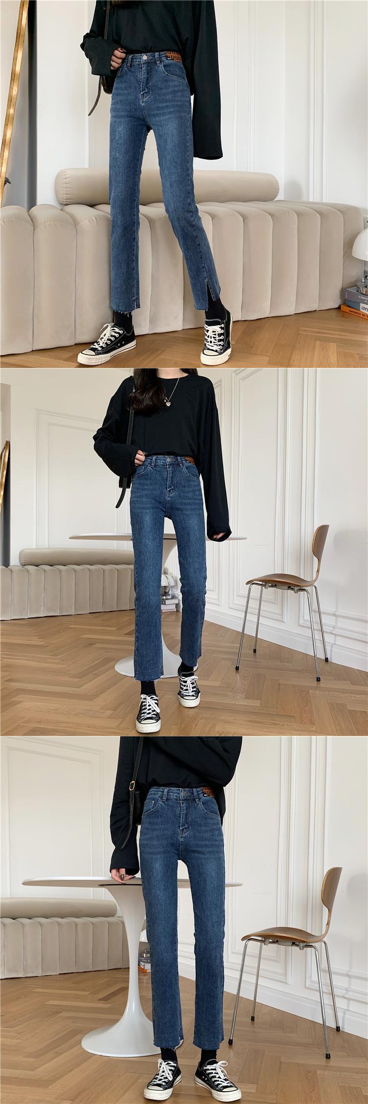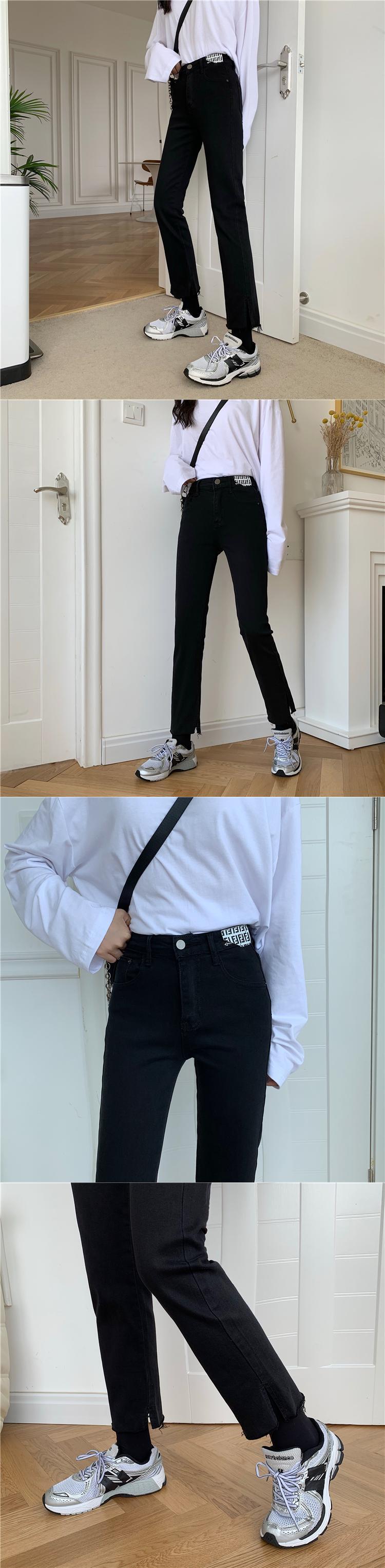 スプリングオータムハイウェストスリットジーンズ 春物 秋物 misskkl63734890610