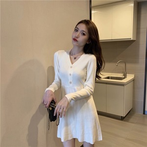 ニットドレス スプリングオータム薄手ウェストスカート 春物 秋物 misskkl91903399499