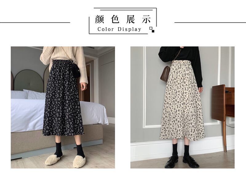 スプリングオータムハイウェスト薄手フローラルAラインスカート 春物 秋物 花柄 misskkl15155665148