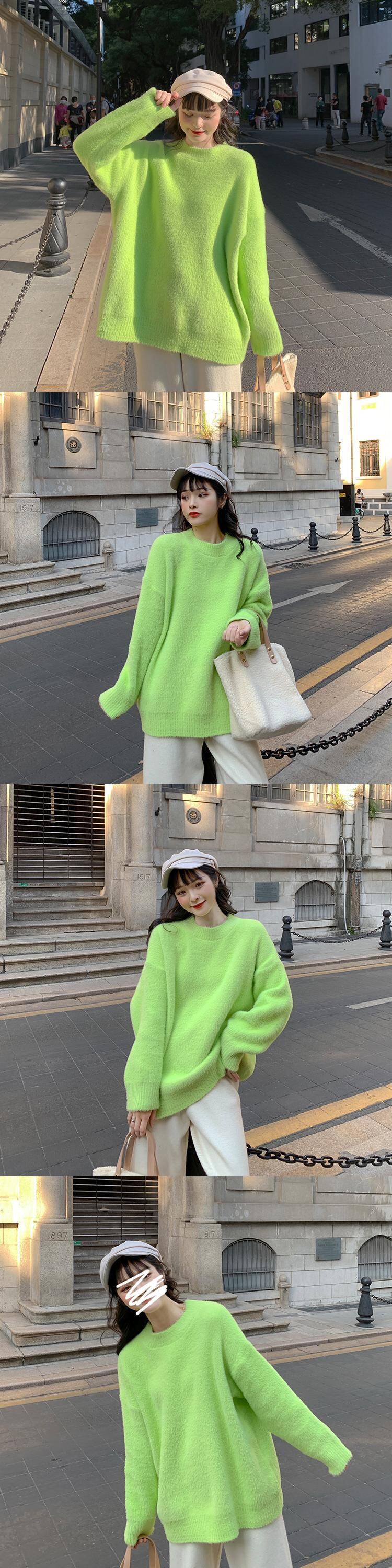 スプリングオータムスタイルカラールーズニットセーター ロング 春物 秋物 misskkl91184292342