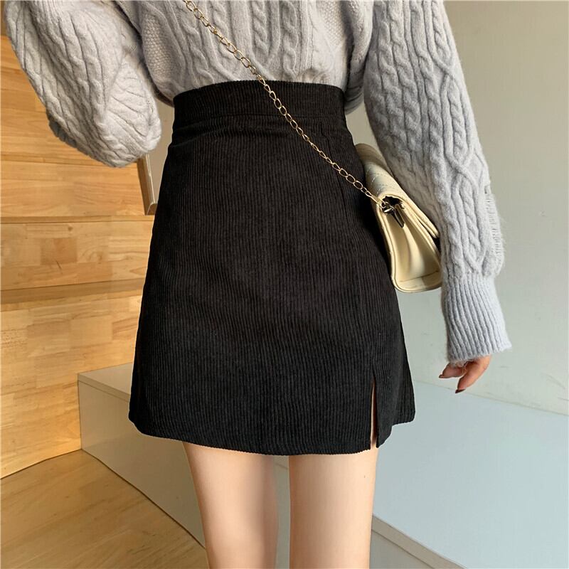 スカート サマーハイウェストウェストAラインショートコーデュロイ 夏物 misskkl71178678621