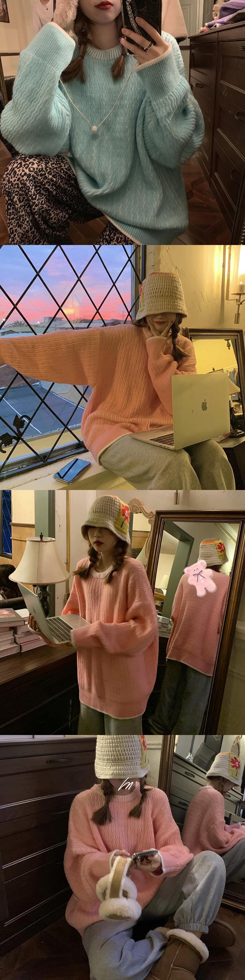 スプリングオータムルーズパターンプルオーバー ニットセーター レディース ロング 春物 秋物 misskkl41443790657