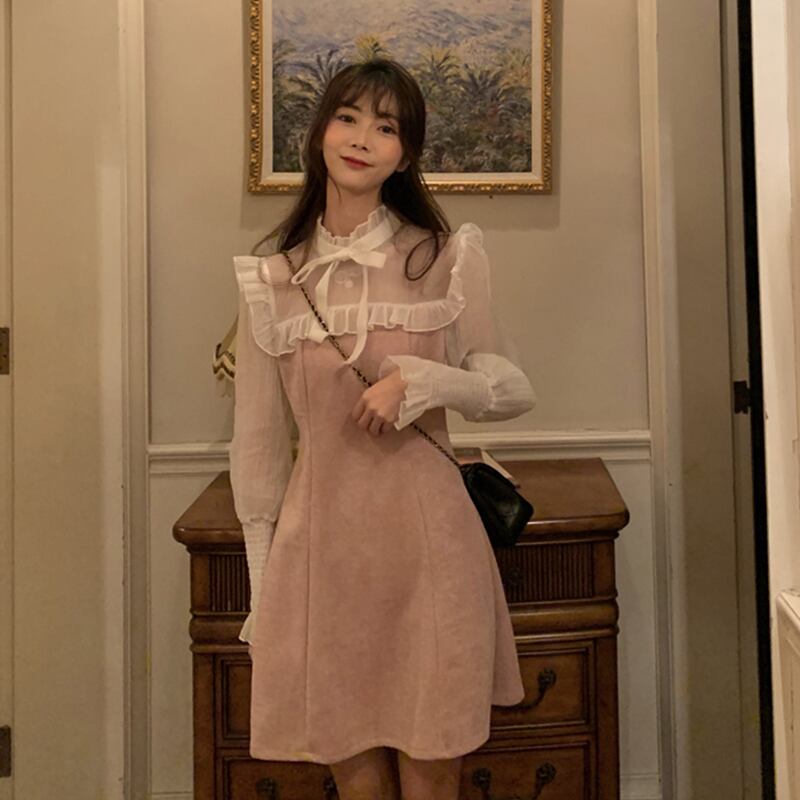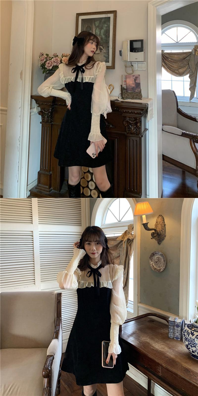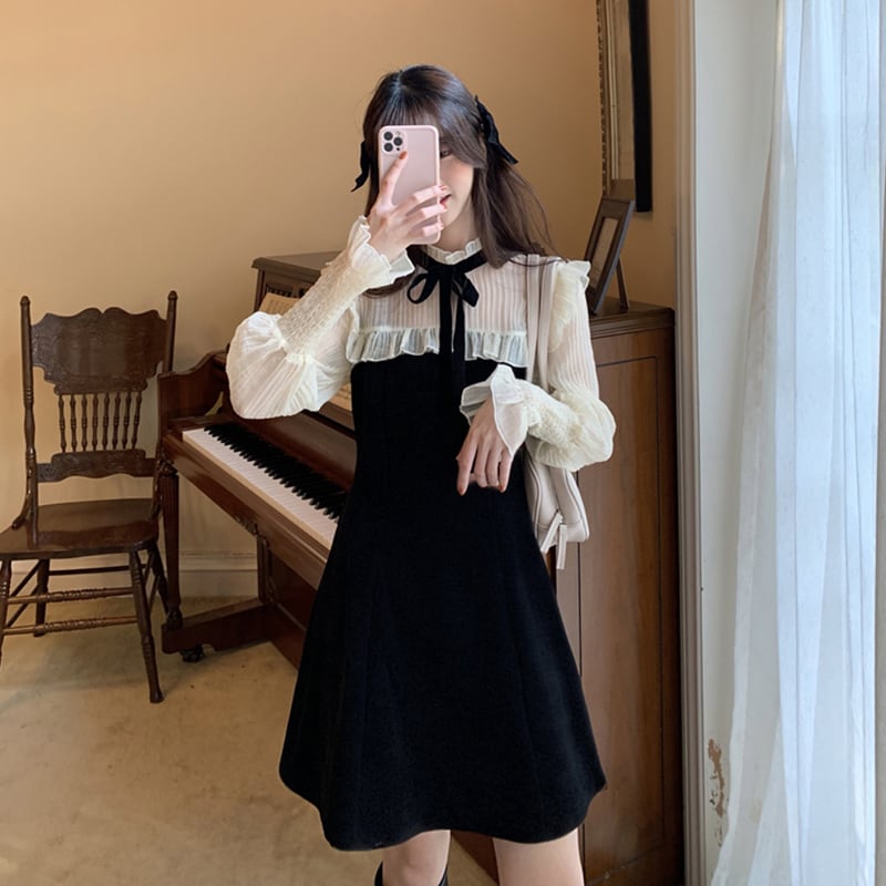 ウィンタースタイルAラインハイウェストカラードレス ロング 大人ガーリー スウィート キュート カジュアル 冬物 ステッチ misskkl24545439109