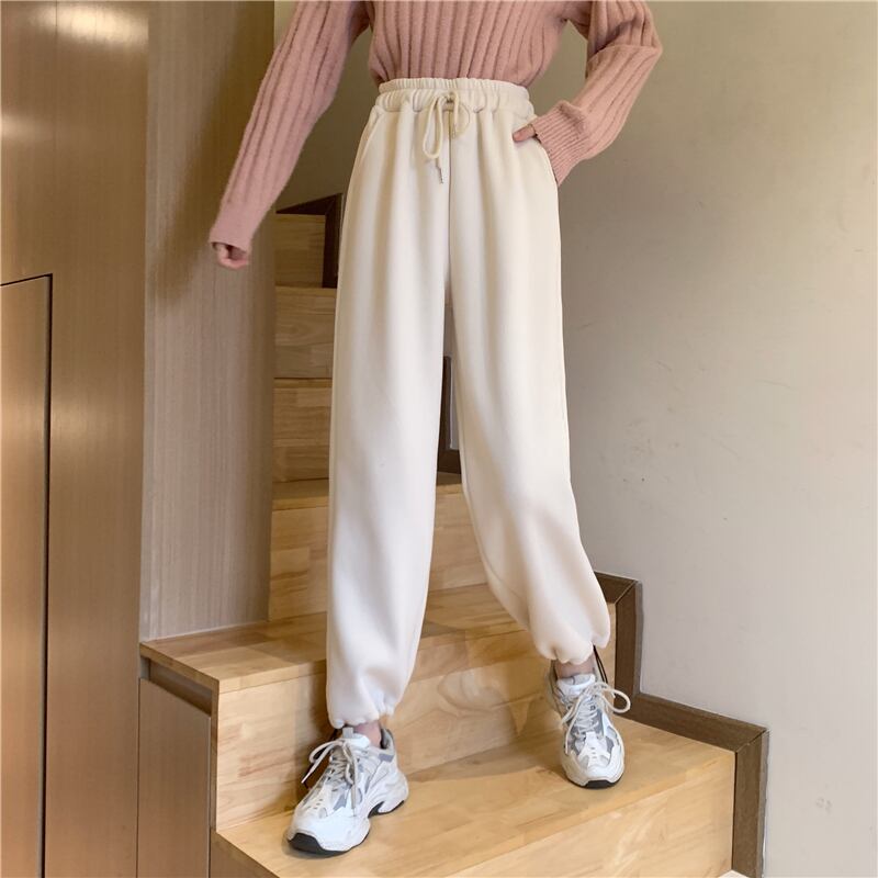 スプリングオータムハイウェストウェストベルベットギャザーカジュアルパンツ レディース 春物 秋物 misskkl24210014148