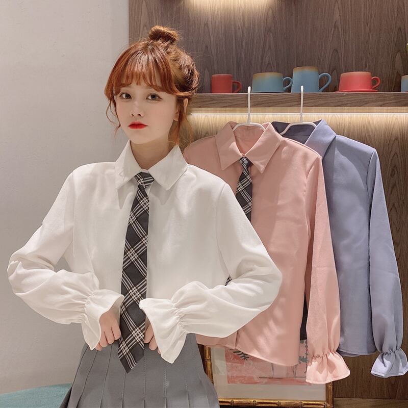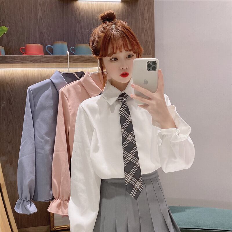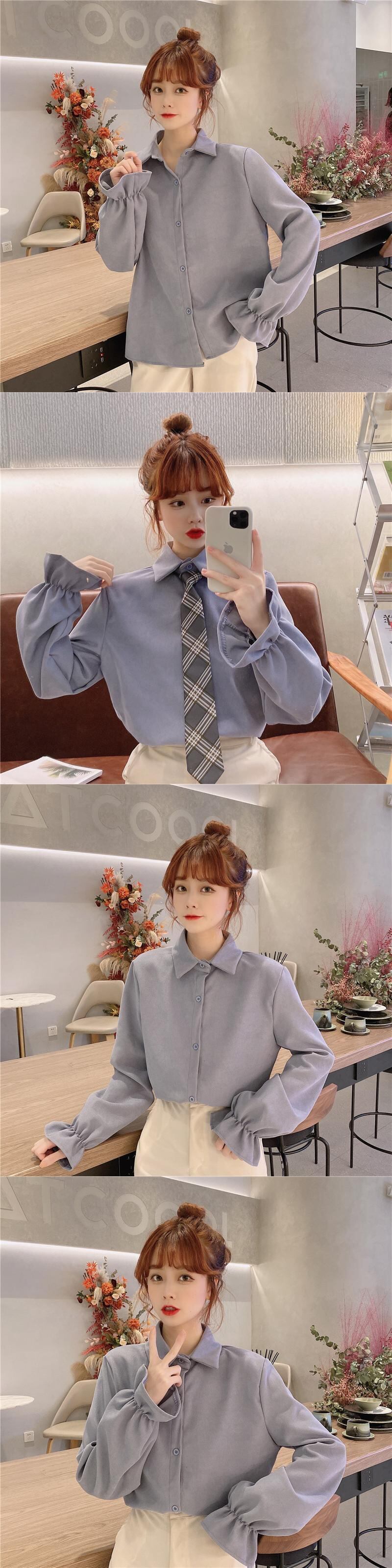 スプリングオータムルーズソリッド カラー長袖スリーブシャツ トップス ロング 春物 秋物 ソリッドカラー misskkl19364727674