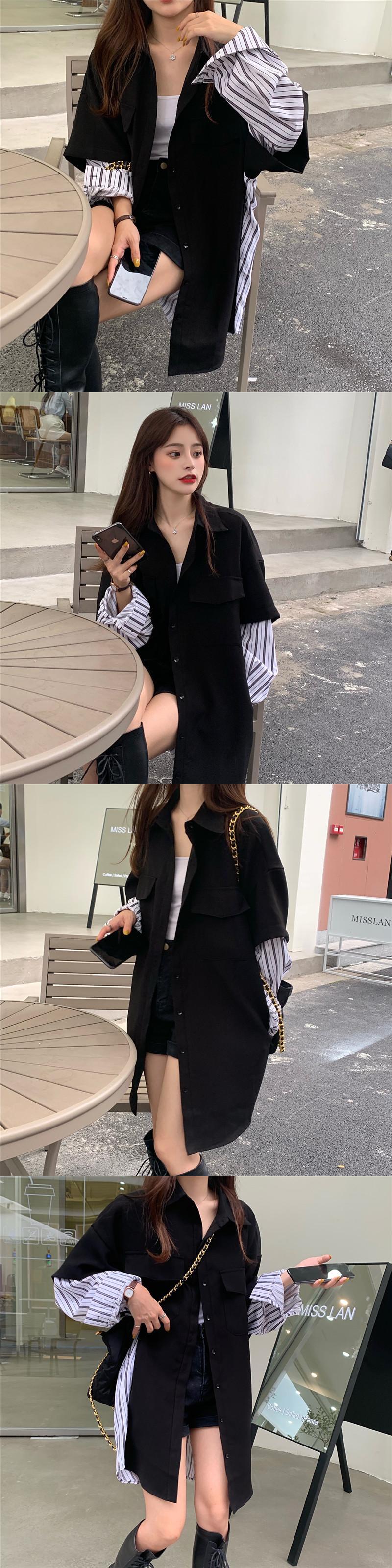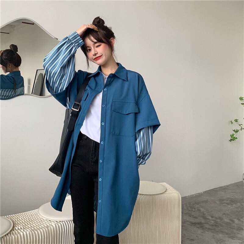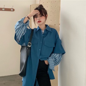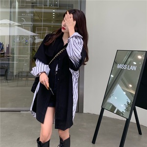 スプリングオータムルーズストライプシャツ レディース ロング 春物 秋物 ステッチ misskkl27707954004