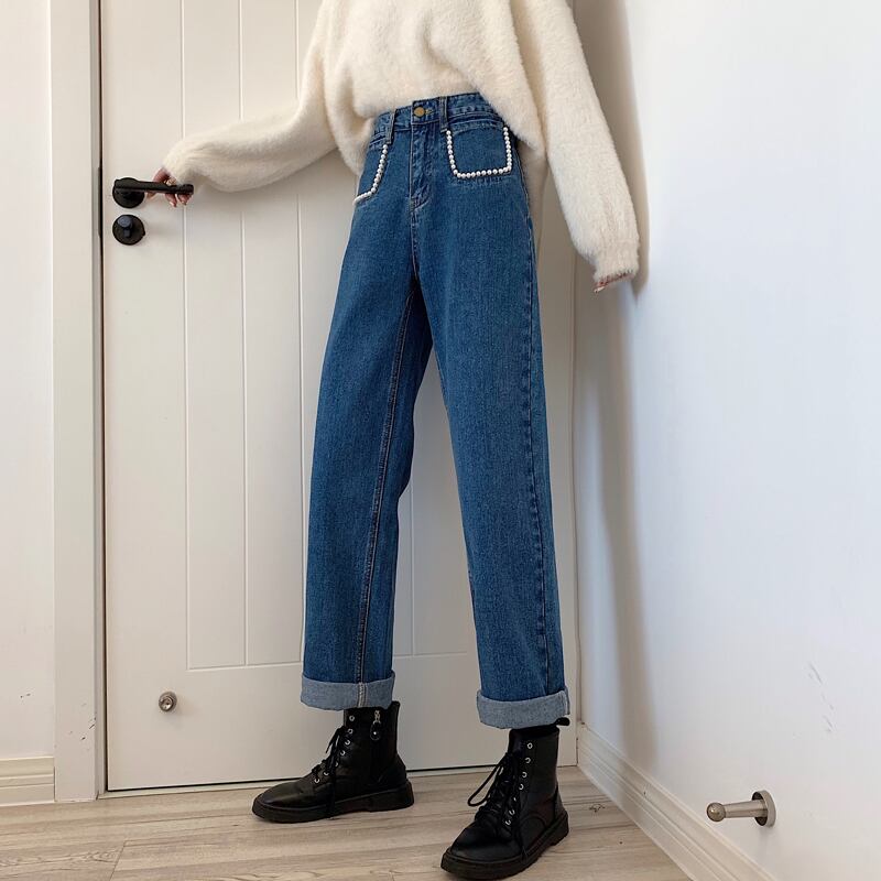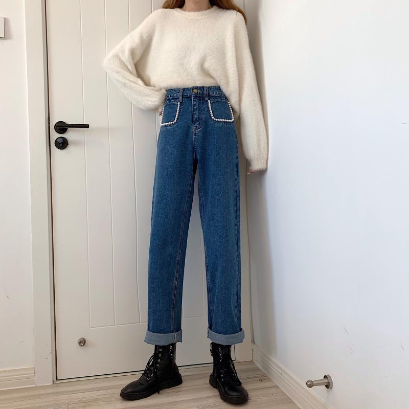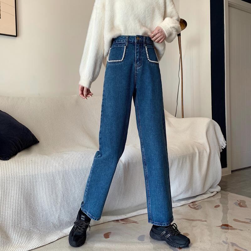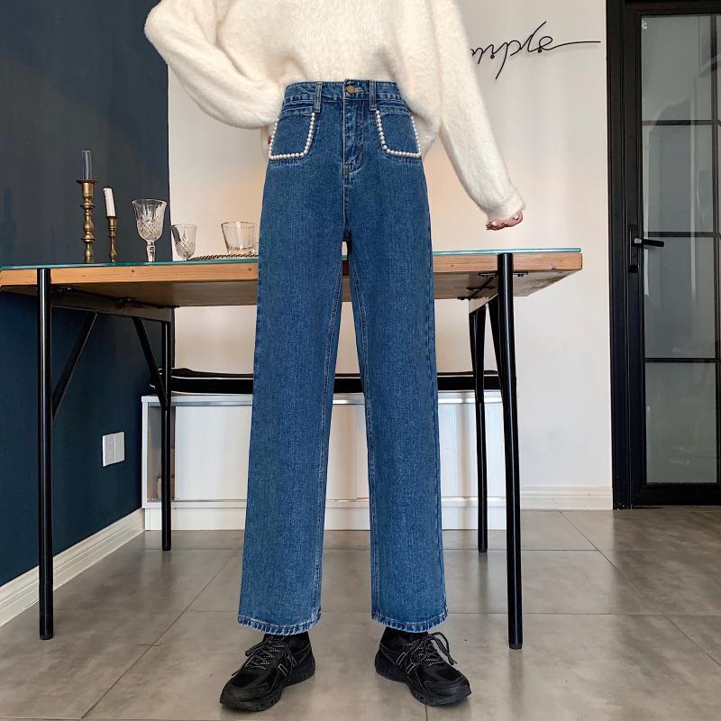 スプリングオータムハイウェストウェストパールポケットワイドレッグパンツ ジーンズ レディース 春物 秋物 ワイドパンツ 真珠 misskkl49519508001