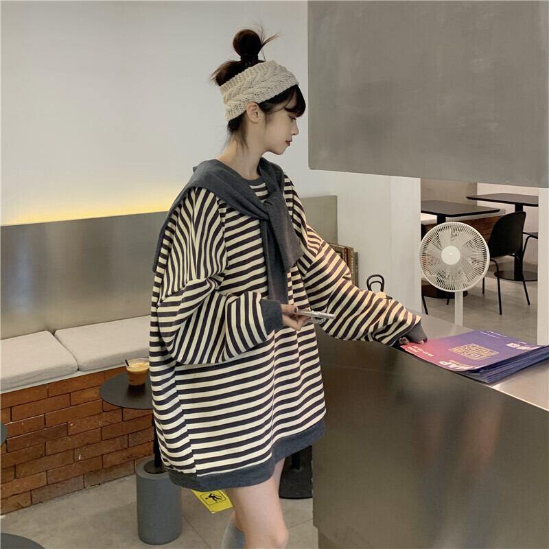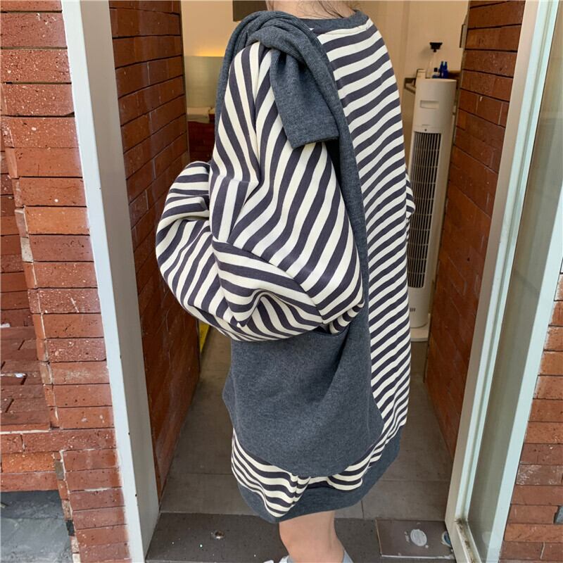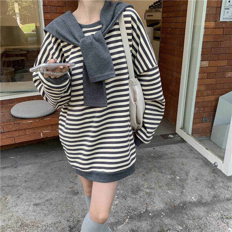 スプリングオータムスタイルルーズベルベットストライプセーター レディース ロング 春物 秋物 misskkl85342821424