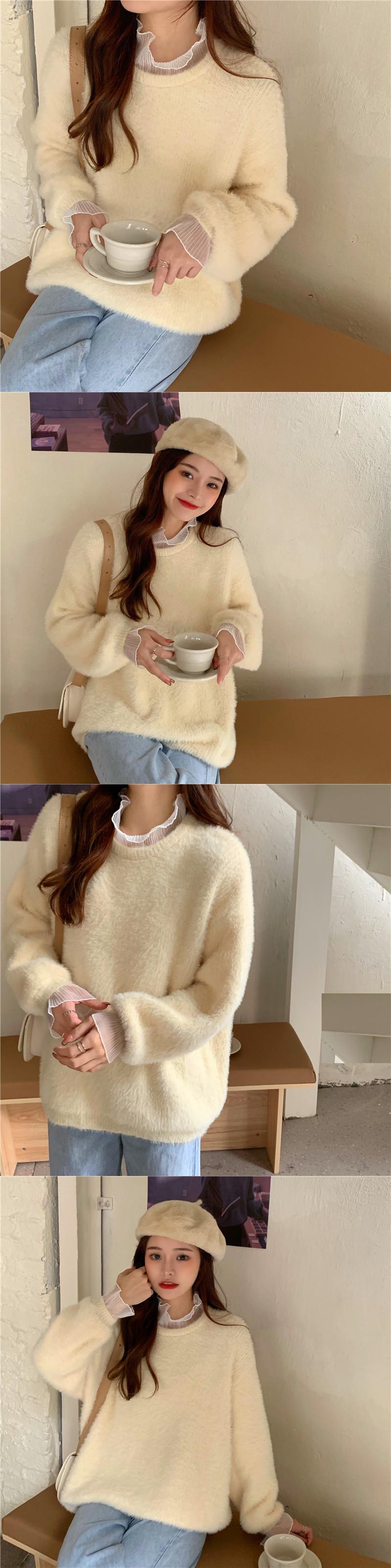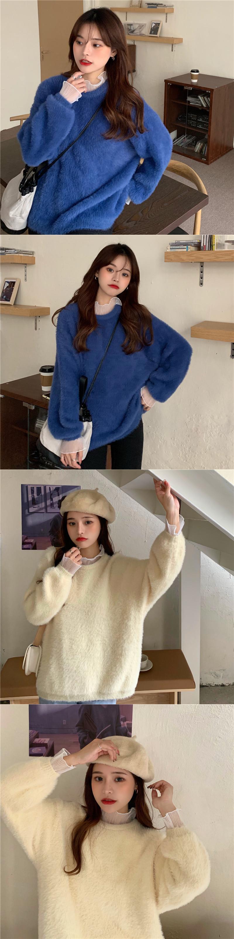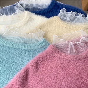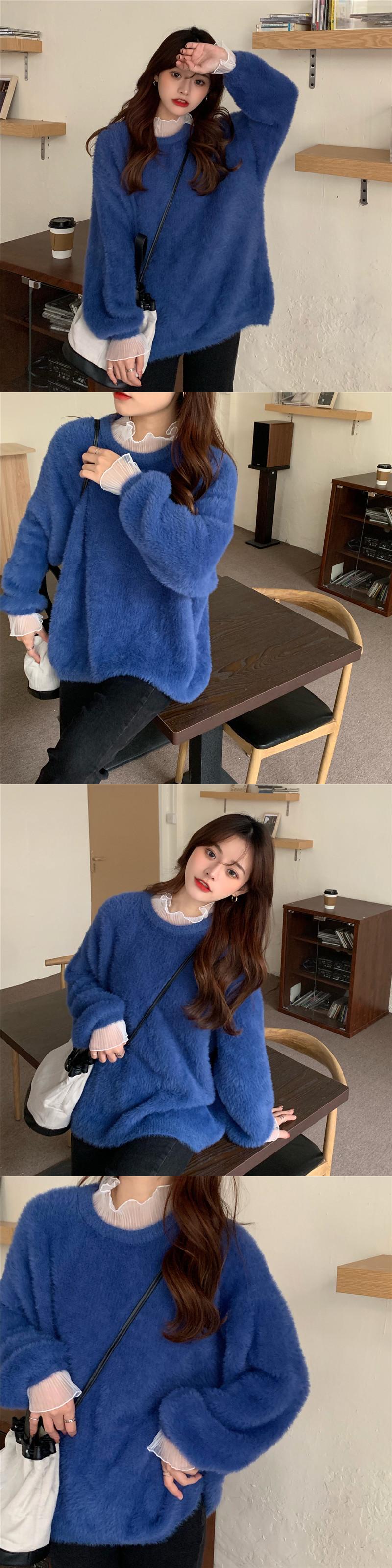 スプリングオータムベルベットルーズレースニットセーター レディース ロング 春物 秋物 ステッチ misskkl41744500985