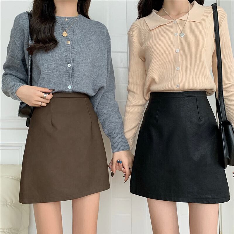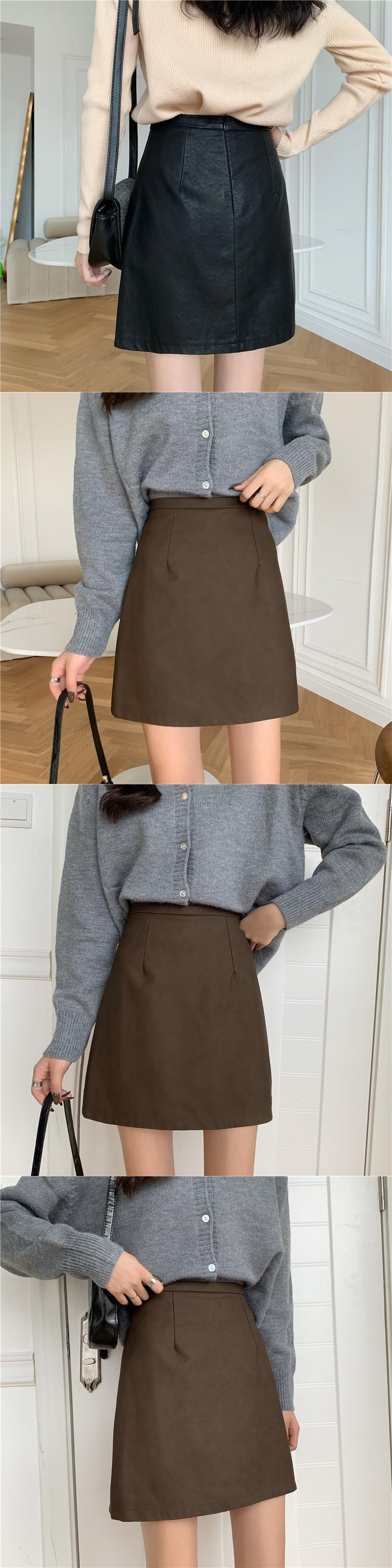 スプリングオータムハイウェストウェスト薄手レザーショートスカート 春物 秋物 misskkl87043727869