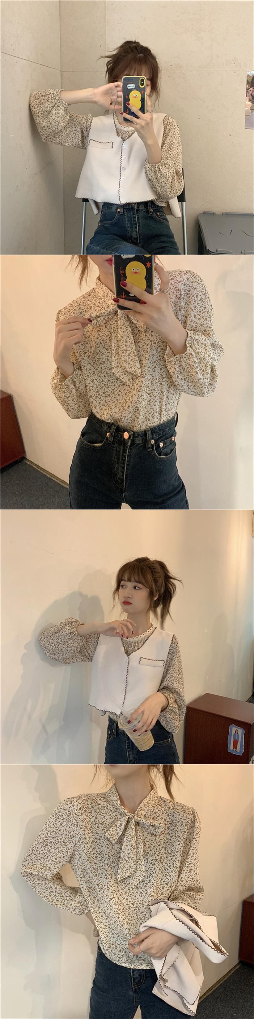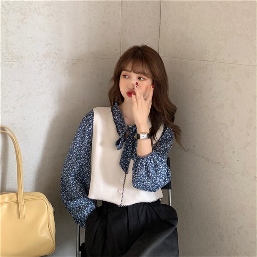 スプリングフローラルシフォンシャツ レディース ロング レース 春物 花柄 レースアップ misskkl21992565031