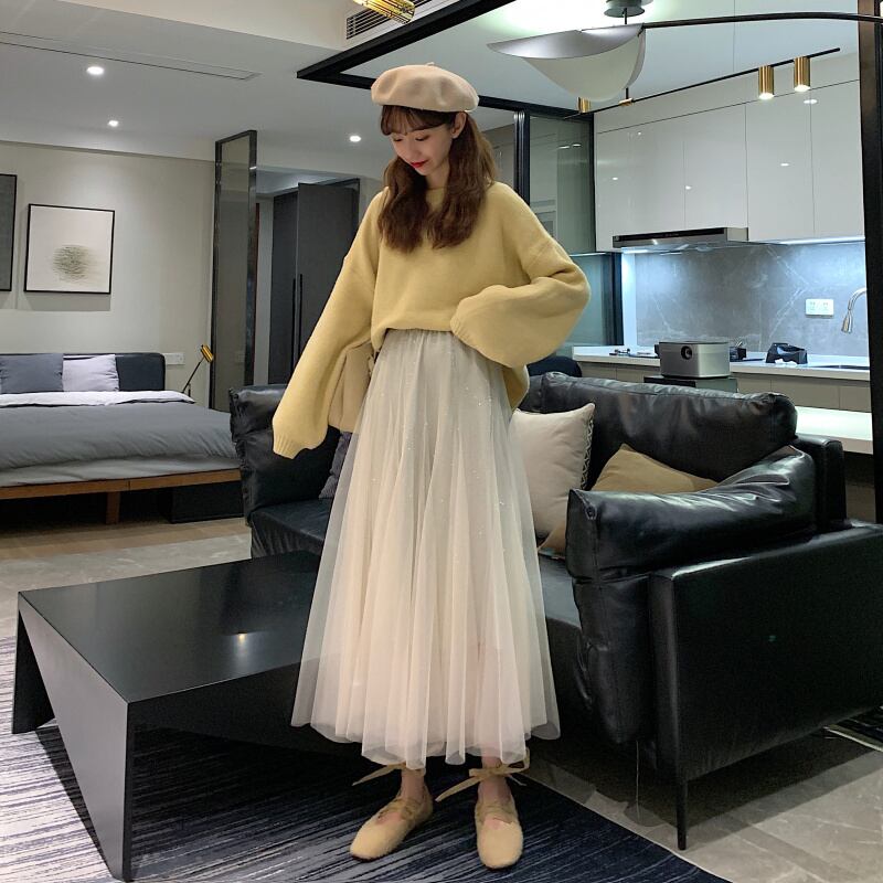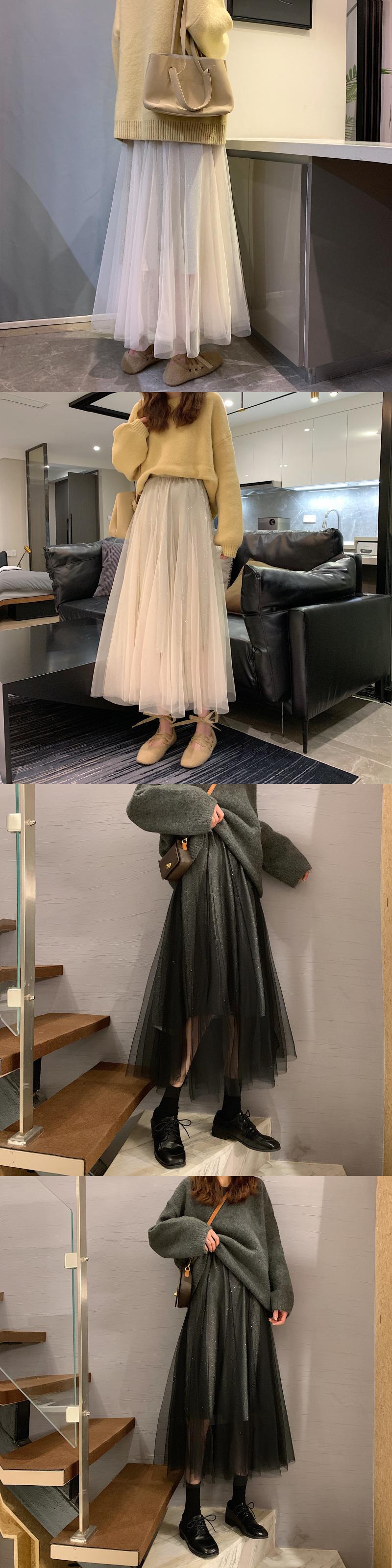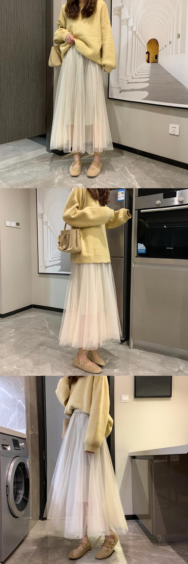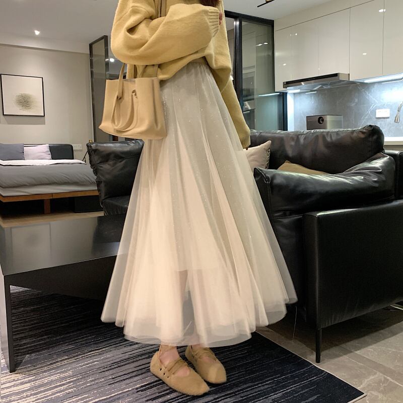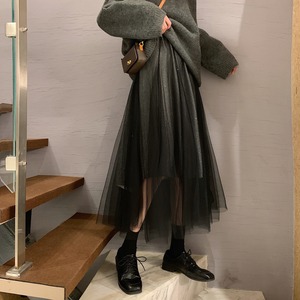 スプリングオータムハイウェストウェストメッシュAラインスカート 春物 秋物 misskkl31073192228