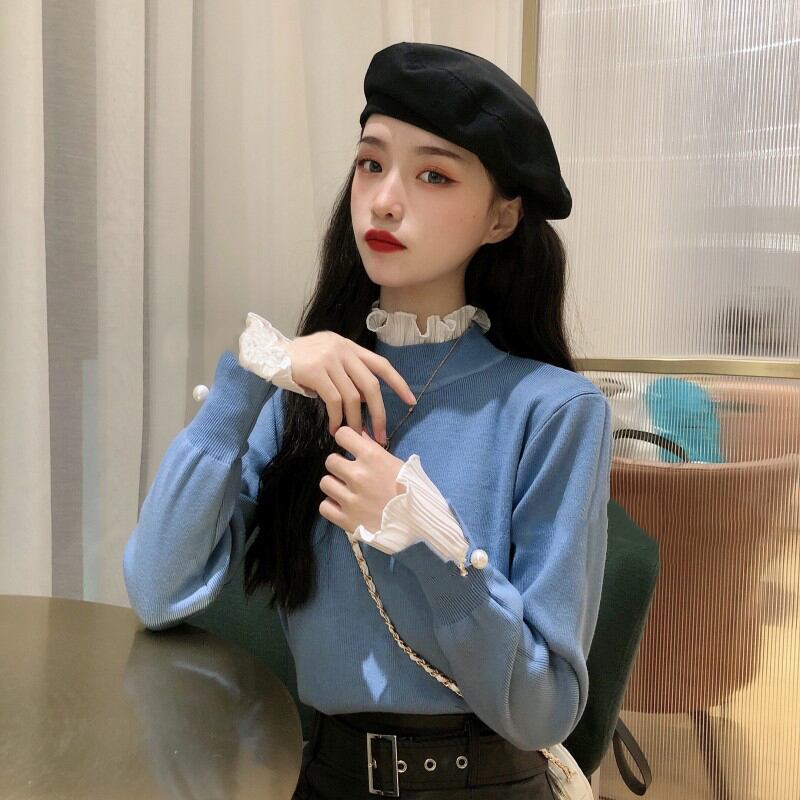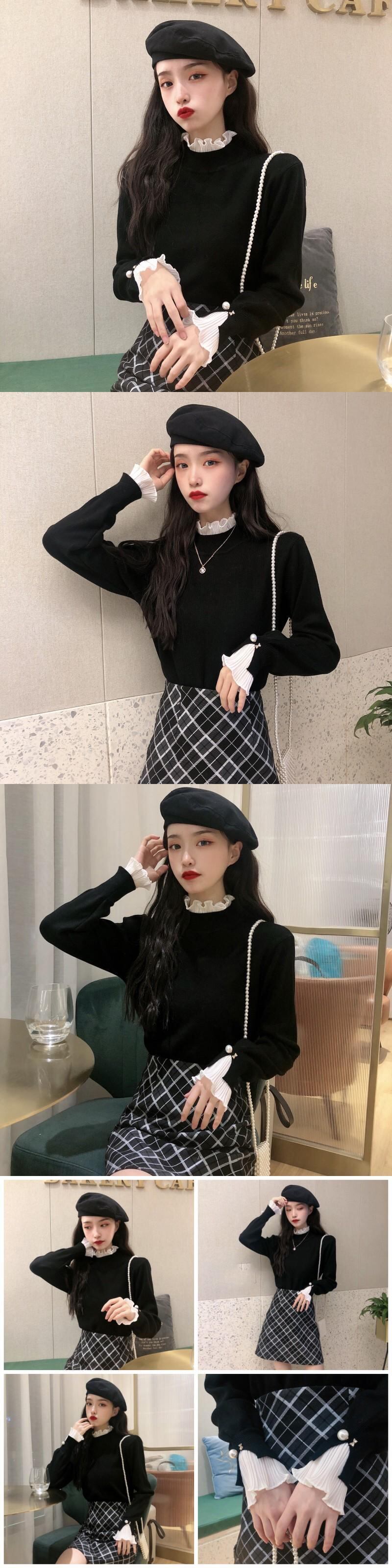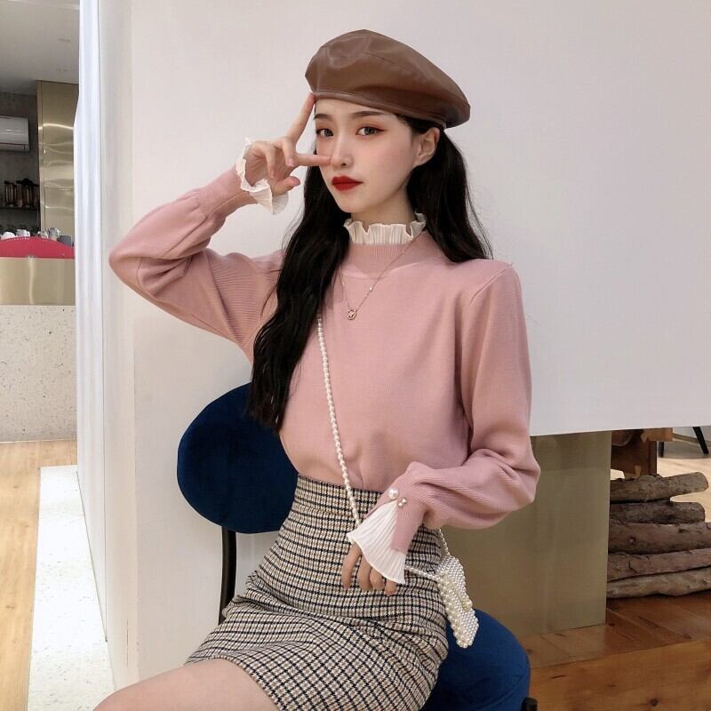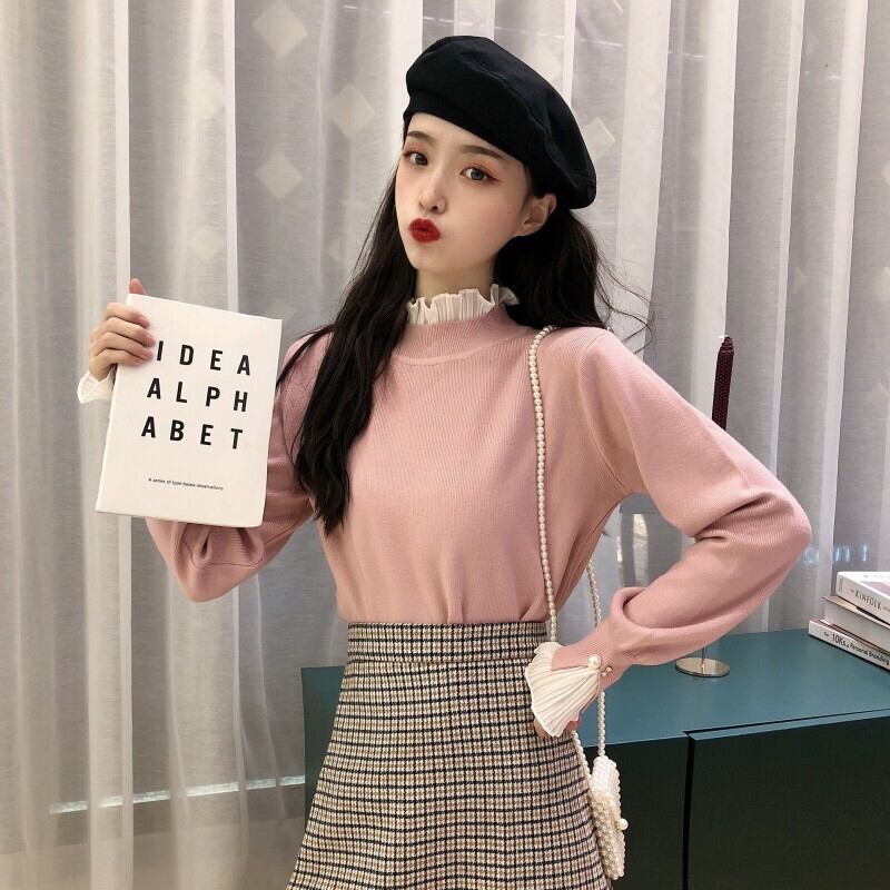 スプリングスタンダードメッシュカラースリムショートセーター ロング レトロ 春物 ステッチ misskkl5764443607
