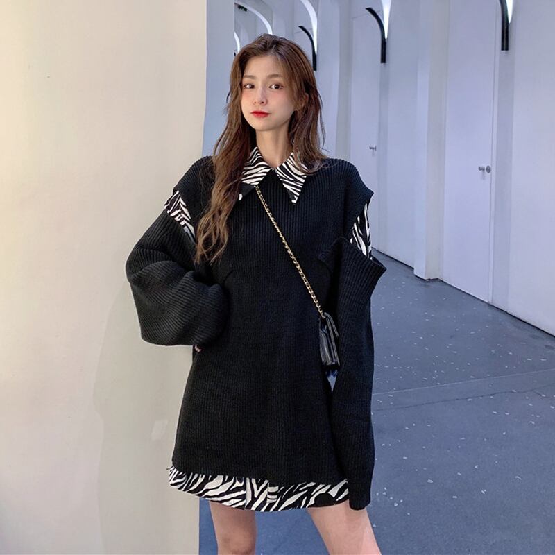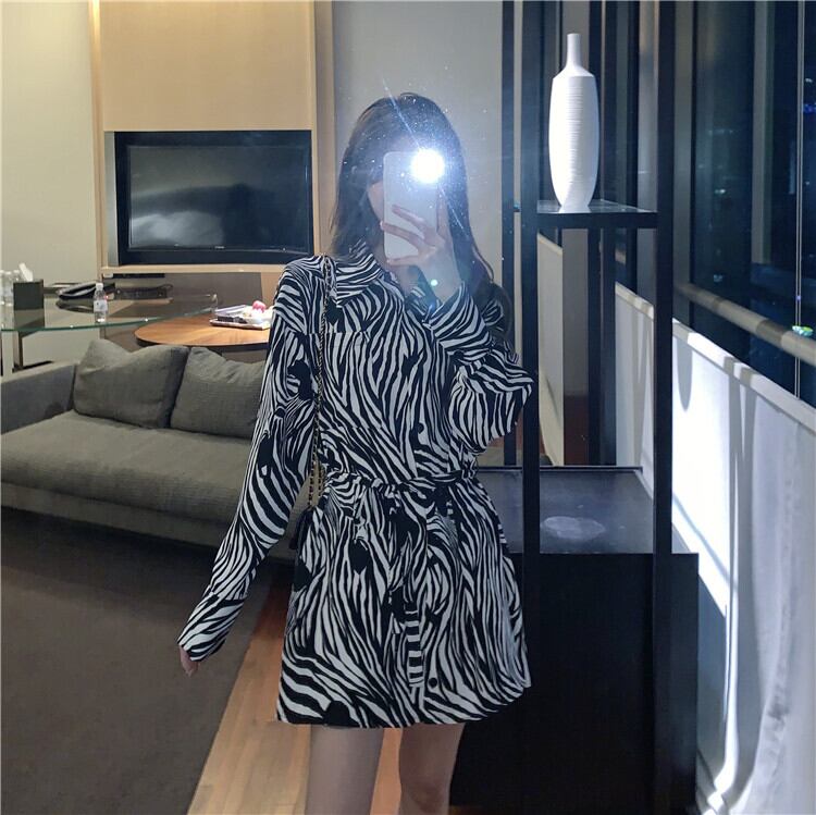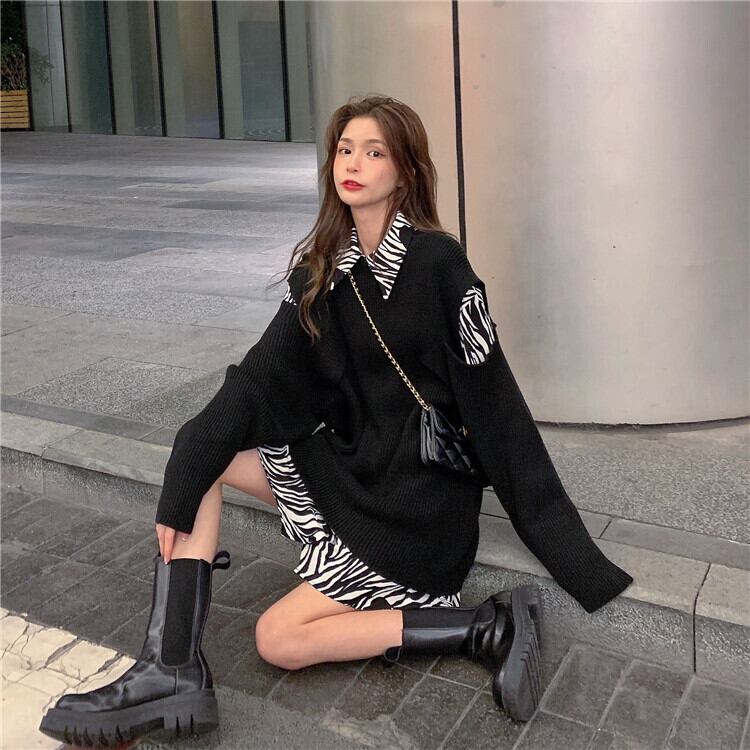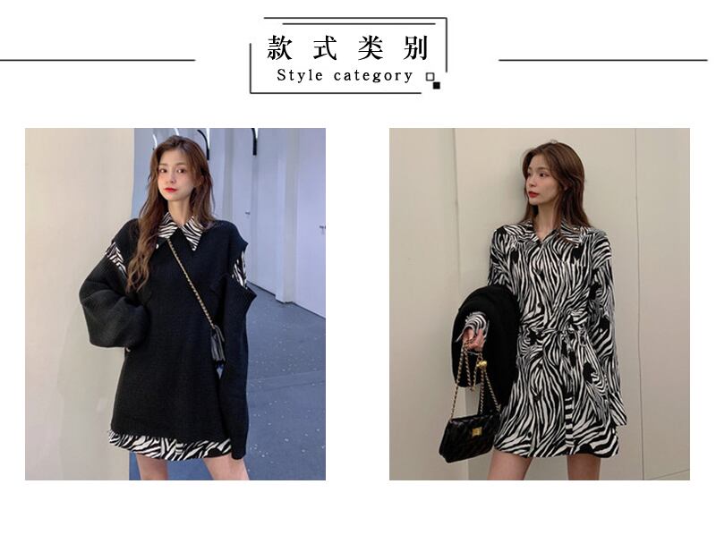 色:黒のセーターワンピース,ゼブラシャツシングル