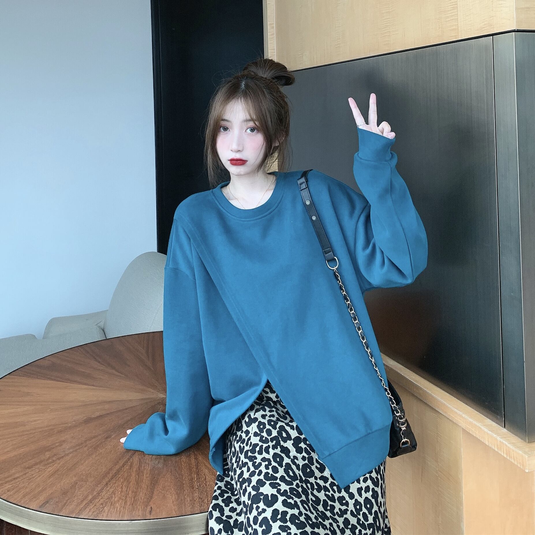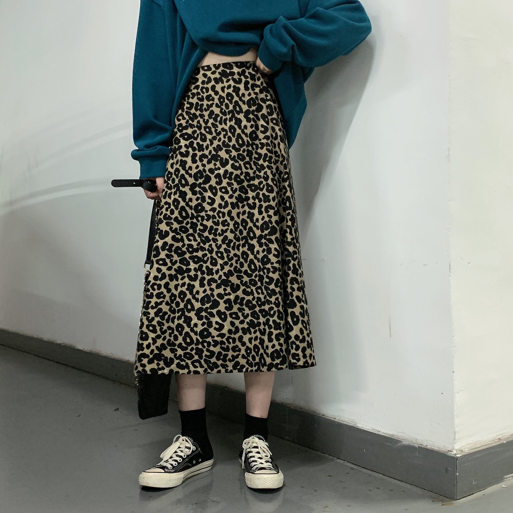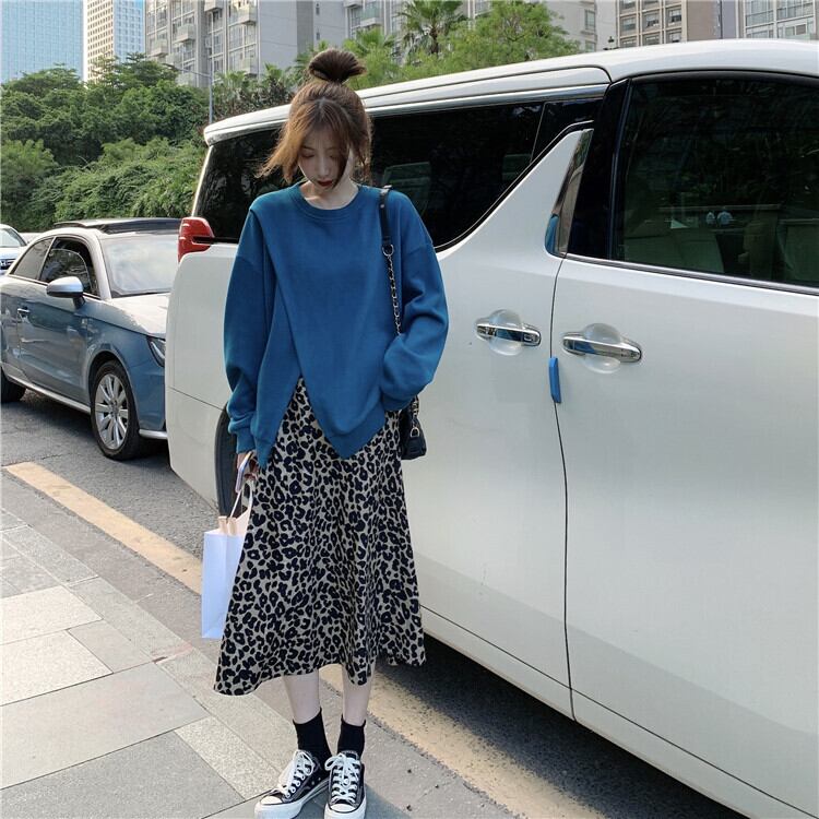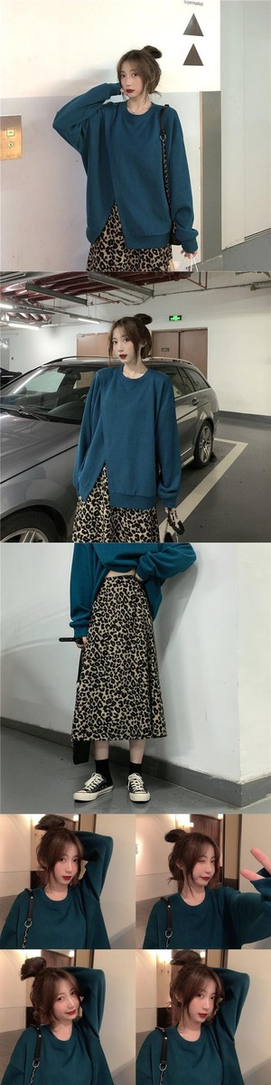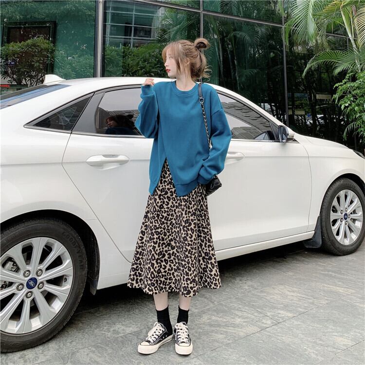 色:青いセーターシングル,ヒョウスカートハーフピース