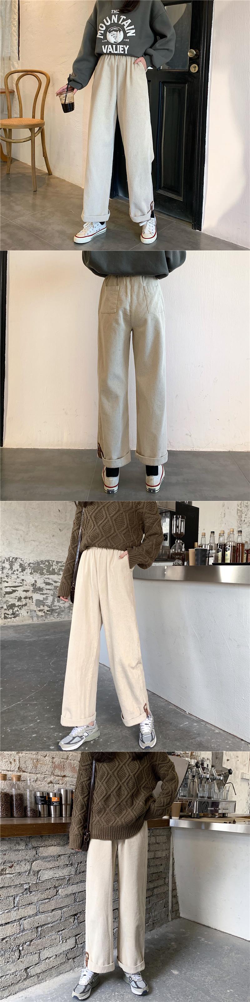 スプリングハイウェストウェストコーデュロイワイドレッグカジュアルパンツ 春物 ワイドパンツ misskkl92523130936