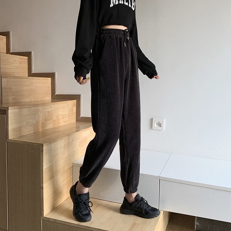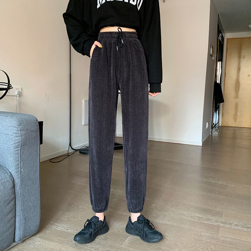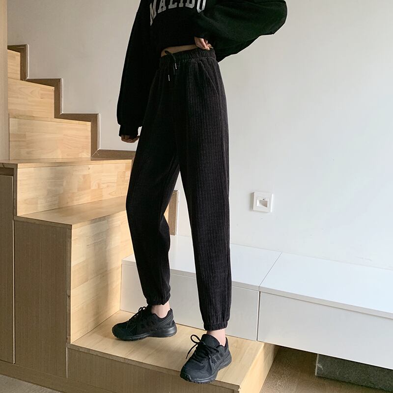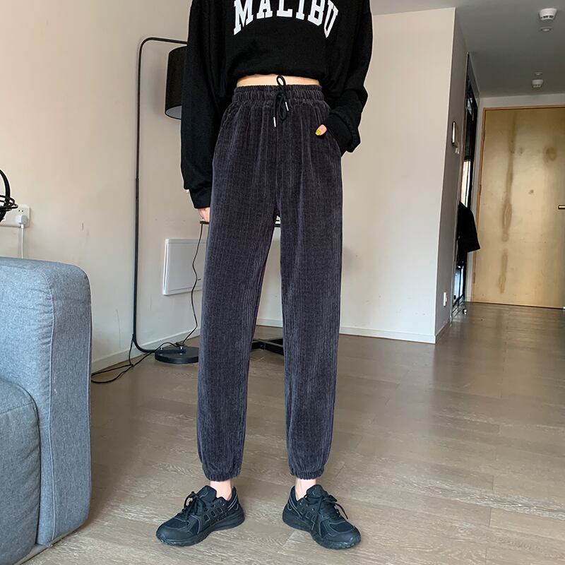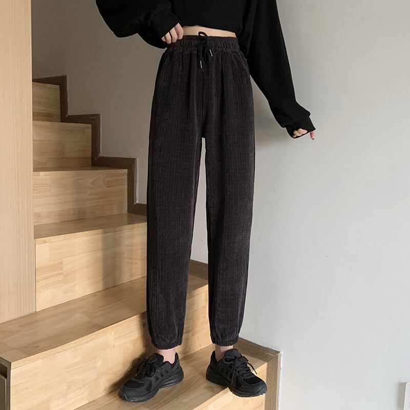 スプリングオータムハイウェストウェストコーデュロイストレッチカジュアルパンツ コルセット エラスティック 伸縮 春物 秋物 misskkl53140631722
