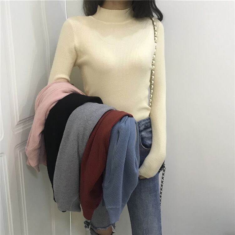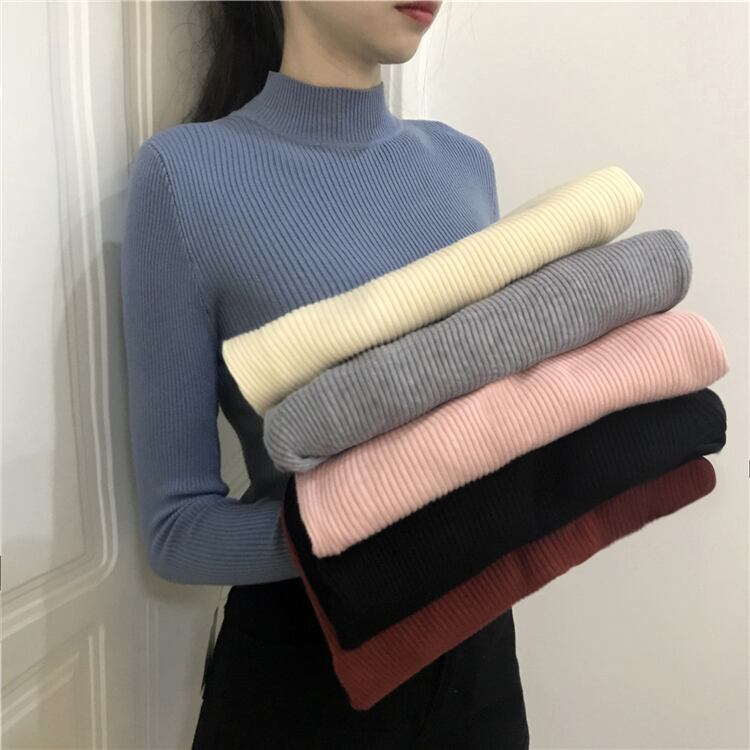スプリングオータムスリムカラーブルーセーター トップス レディース ロング 春物 秋物 misskkl46505030888