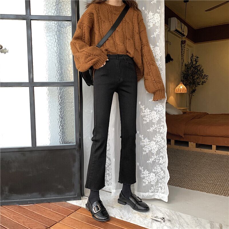 スプリングオータムハイウェストスリムジーンズ レッド 春物 秋物 misskkl88070600607