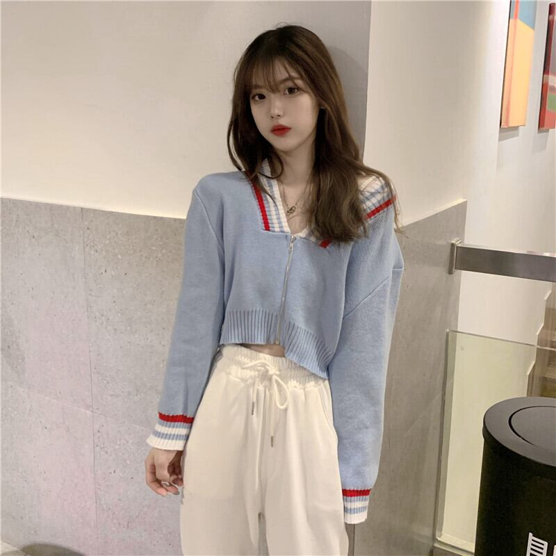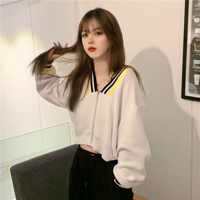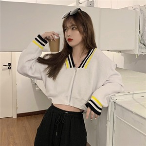 スプリングルーズジッパーショートセーター トップス ロング 春物 ステッチ misskkl98802858844