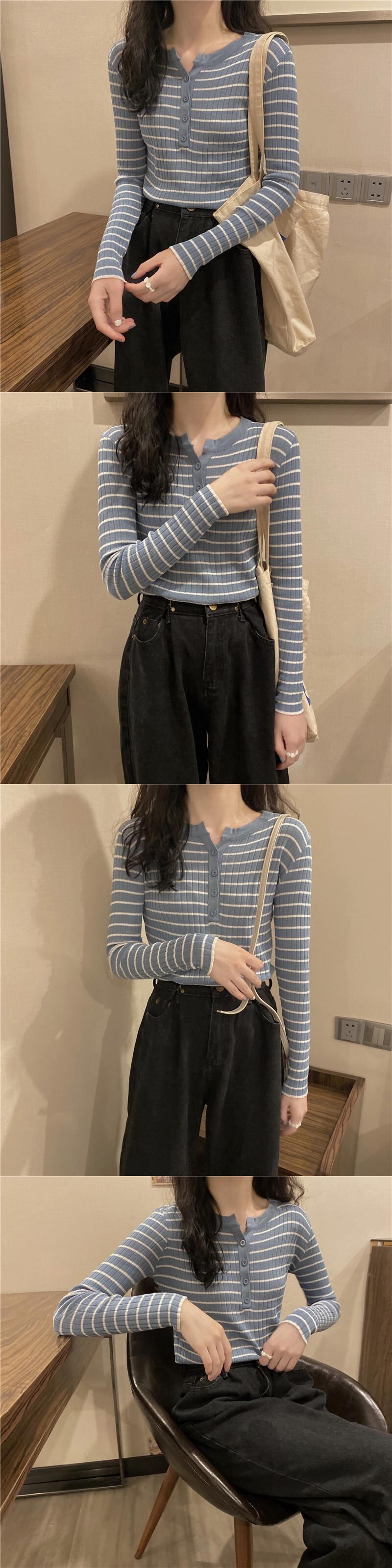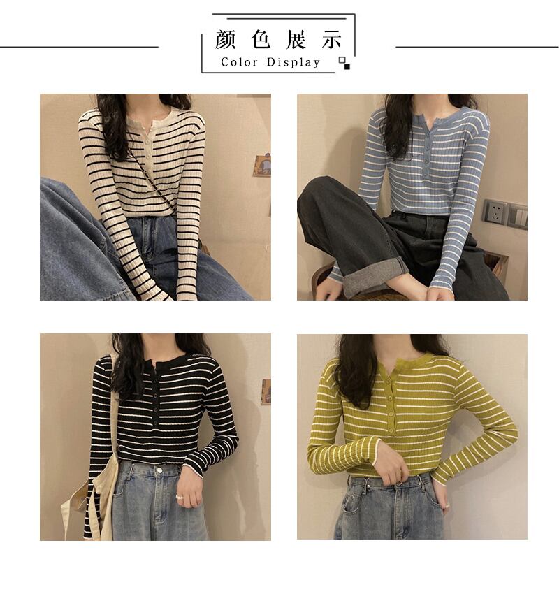 スプリングオータムストライプニットセーター シャツ 薄手トップス ロング 春物 秋物 misskkl565629074