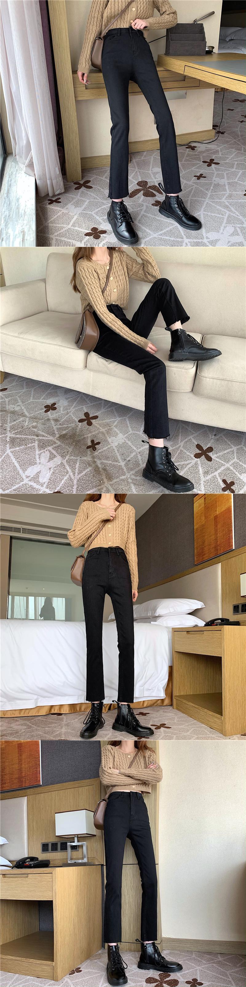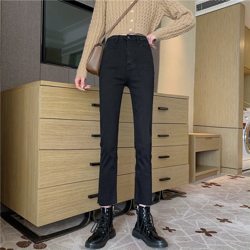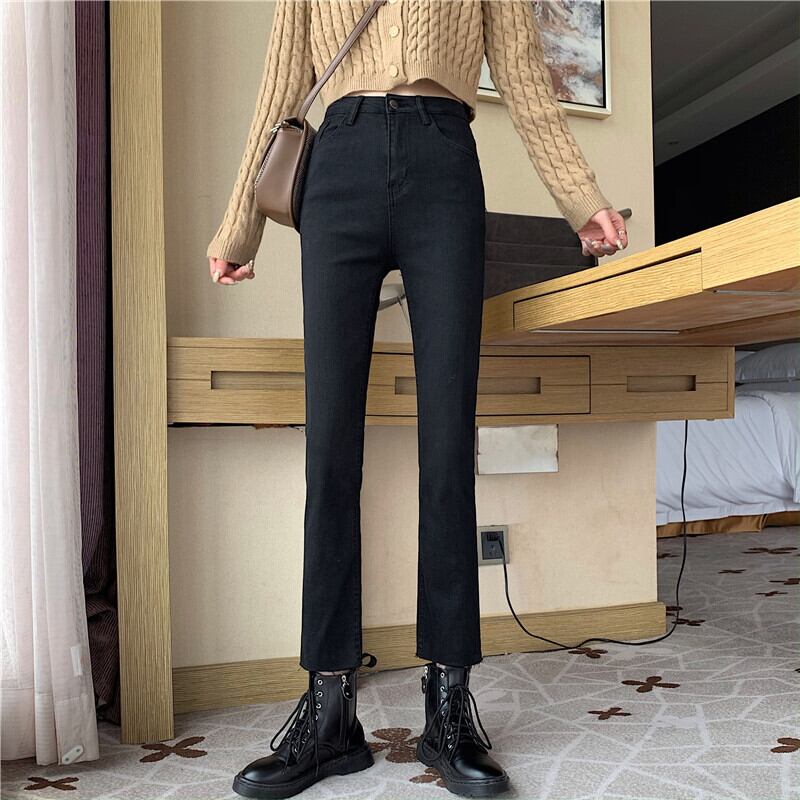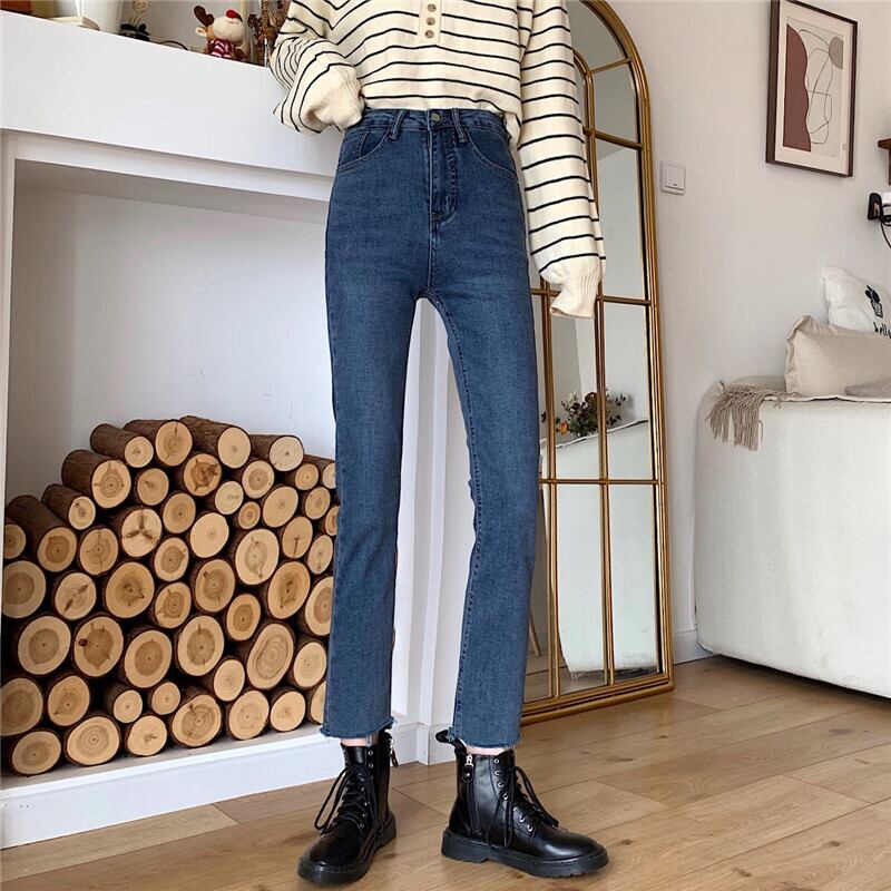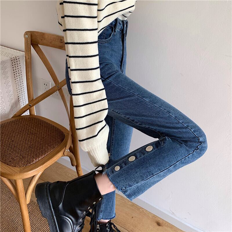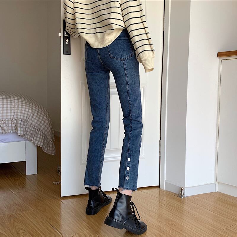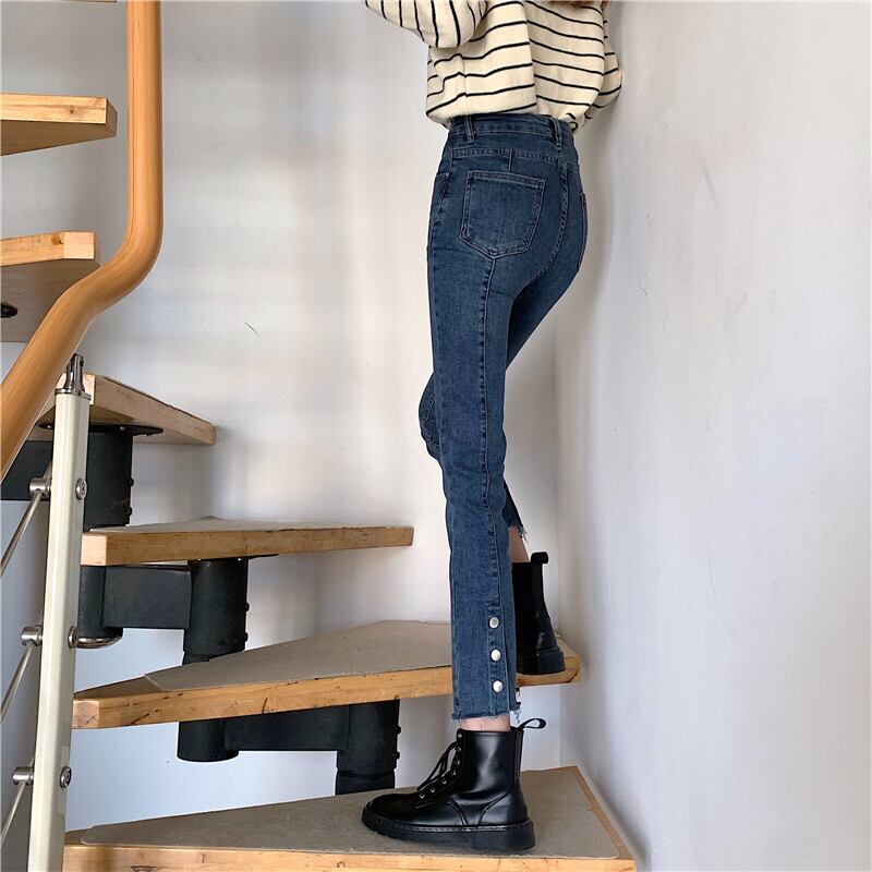 スプリングスタンダードハイウェストウェストスリムボタンジーンズ レトロ 春物 misskkl90440193220
