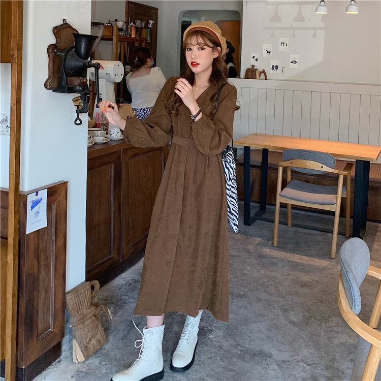 スプリングオータムコーデュロイウェストAラインドレス ロング 春物 秋物 misskkl93600224398