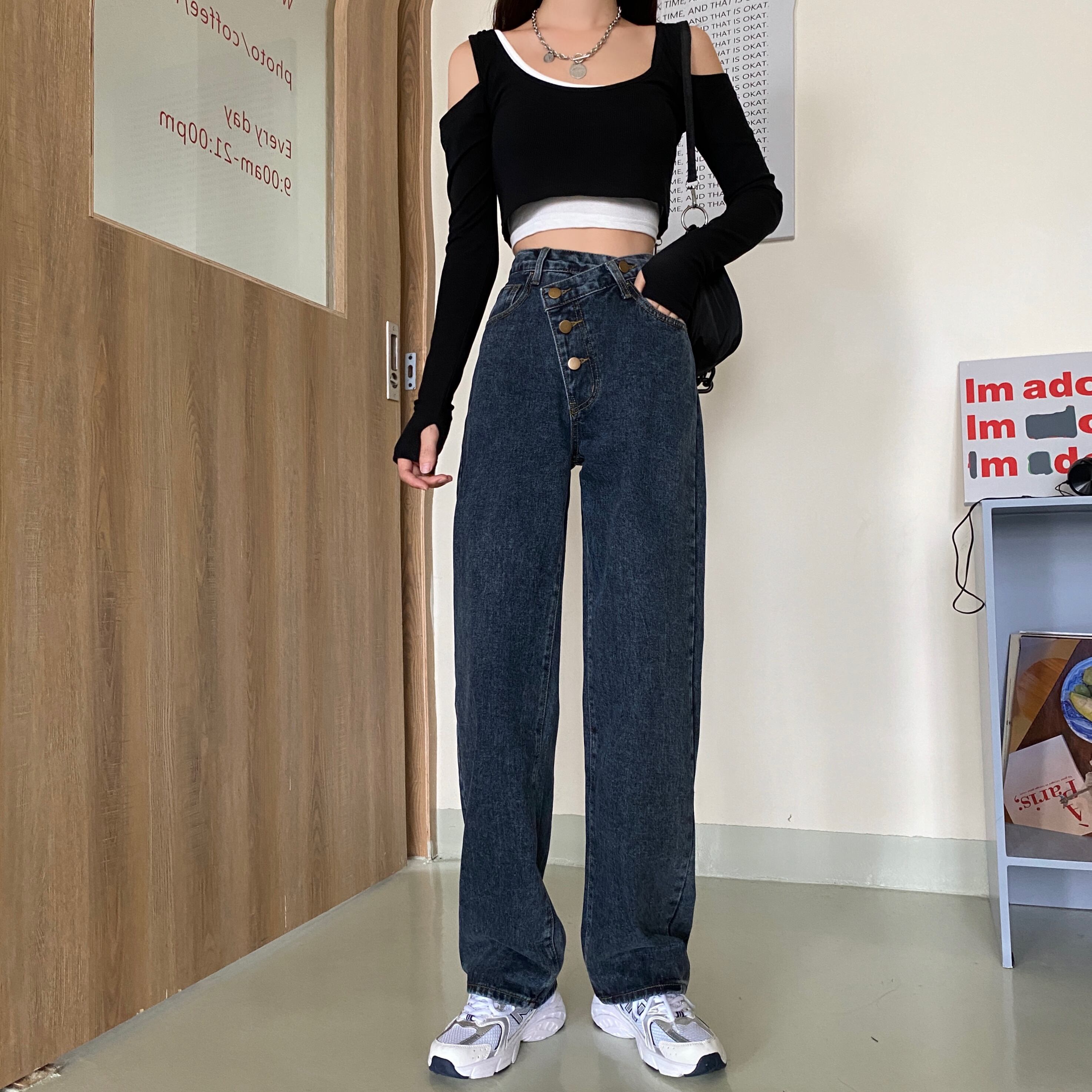 スプリングスタンダードハイウェストウェスト薄手ワイドレッグ レトロ 春物 ワイドパンツ misskkl82327436322