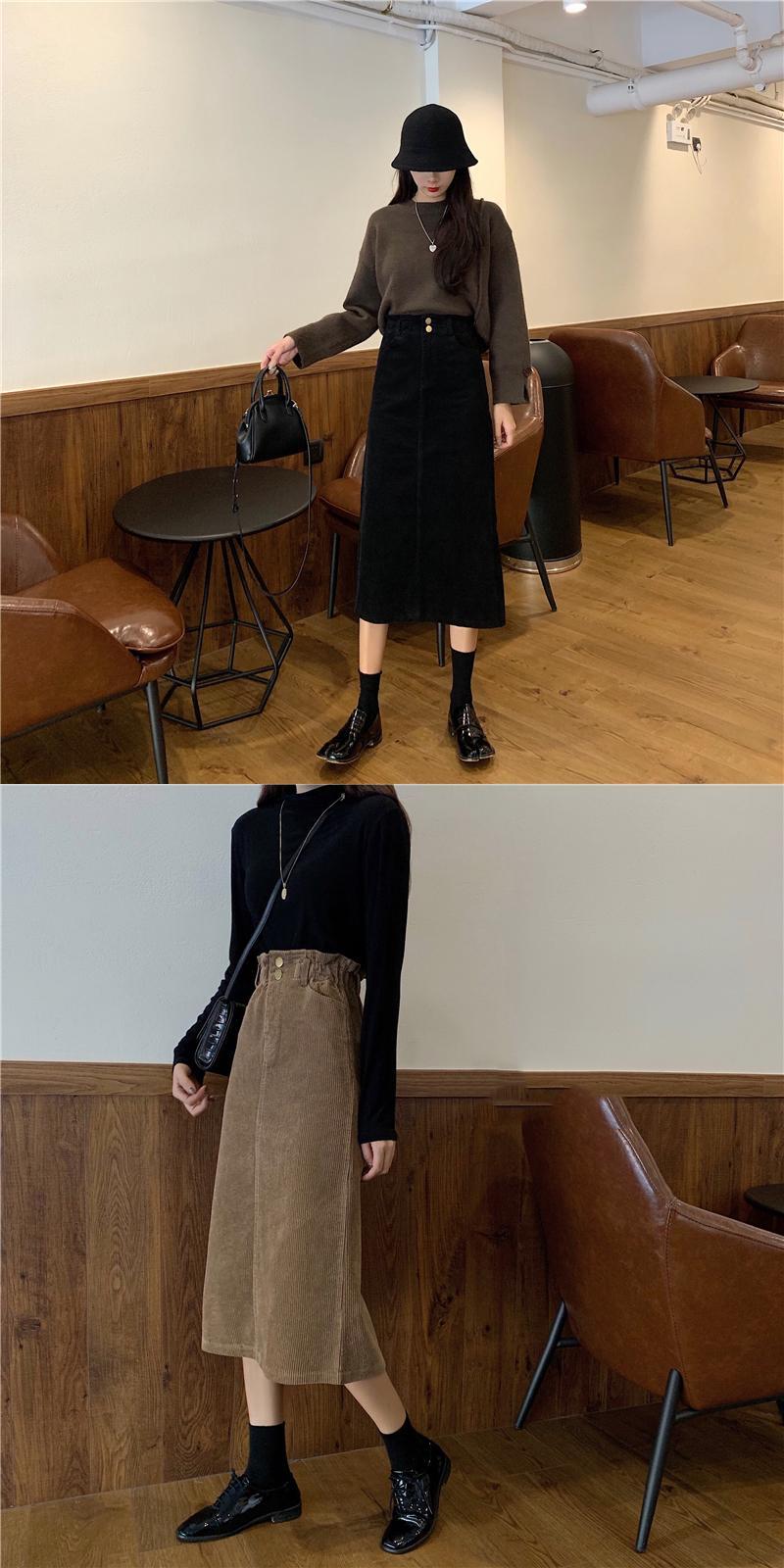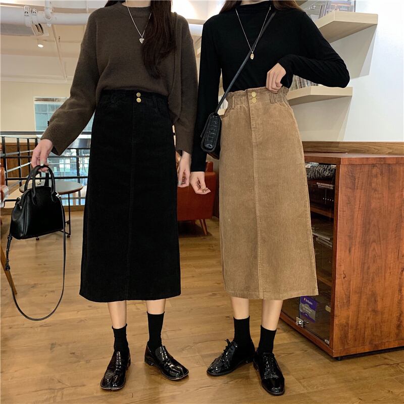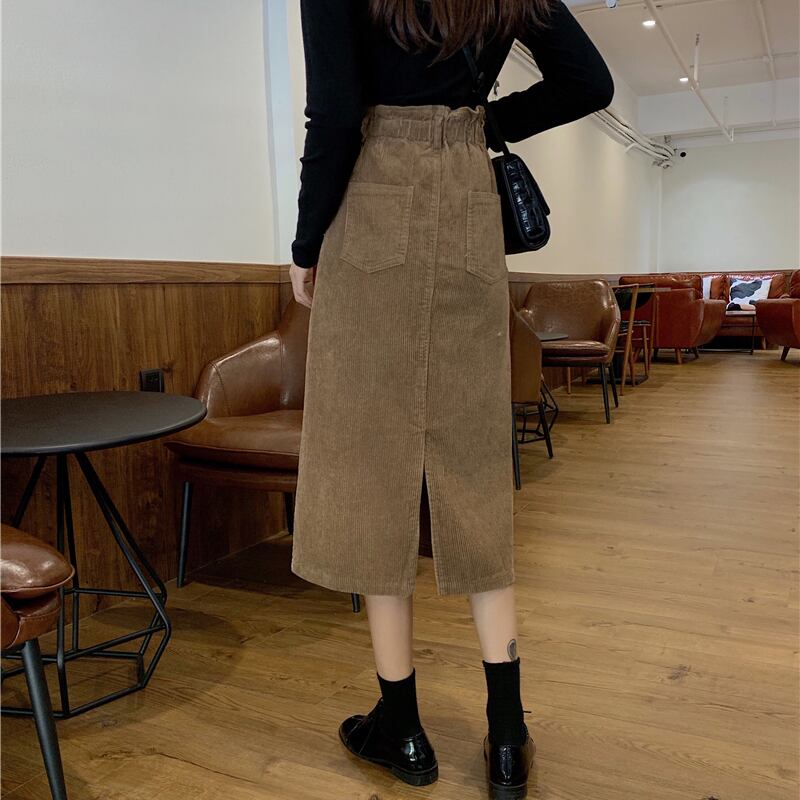 スプリングスタンダードスタイルコーデュロイハイウェストウェストスリムバックスカート レトロ 春物 misskkl30541036118