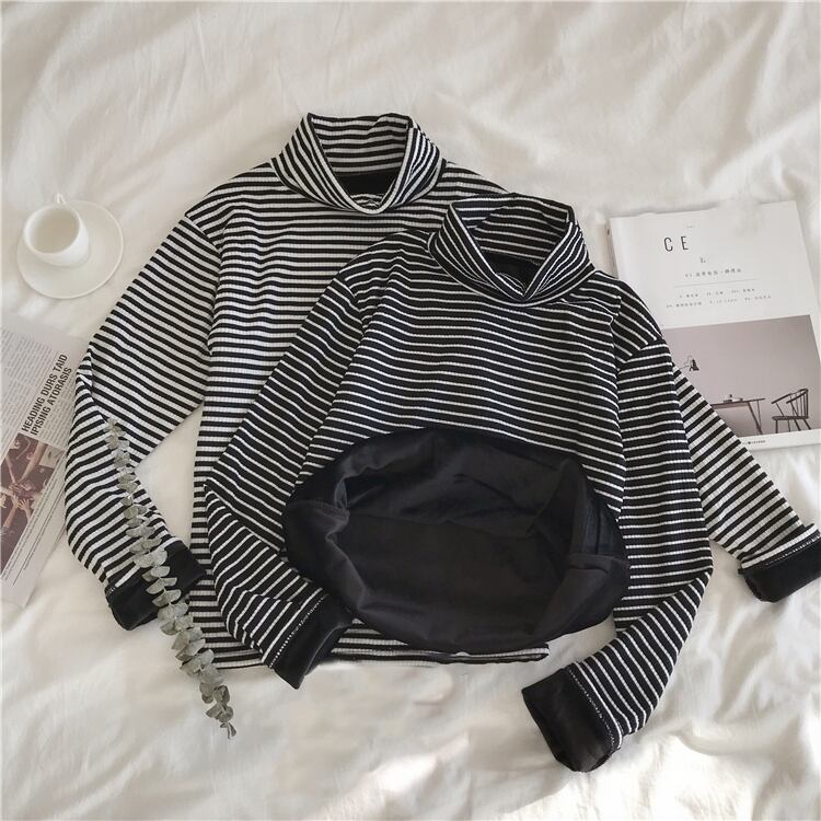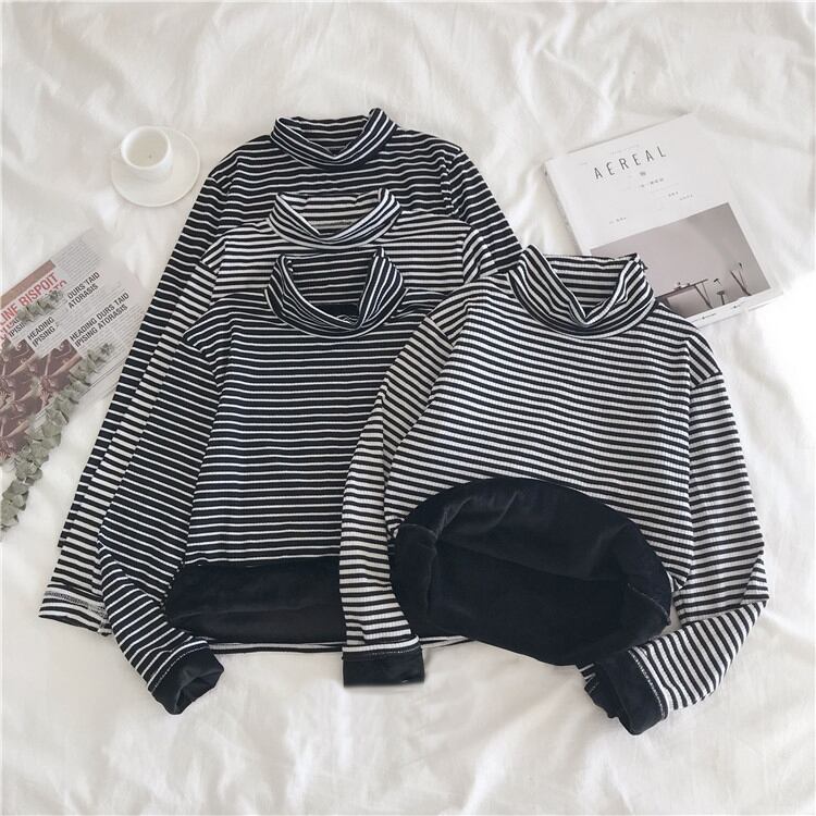 ベルベットストライプシャツ スプリングオータムトップス ロング 春物 秋物 misskkl79787883170