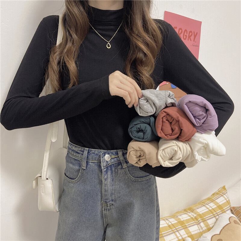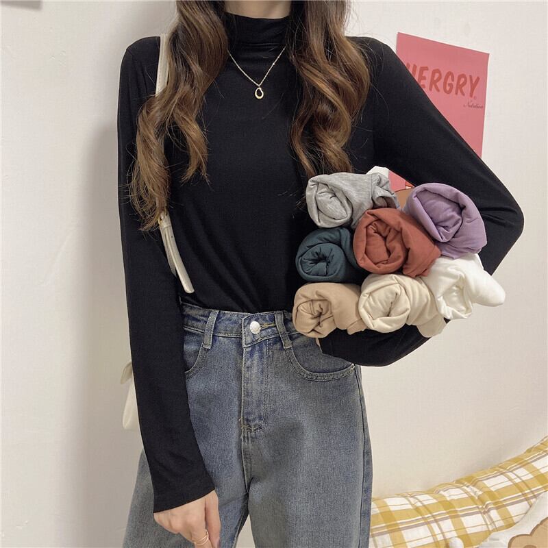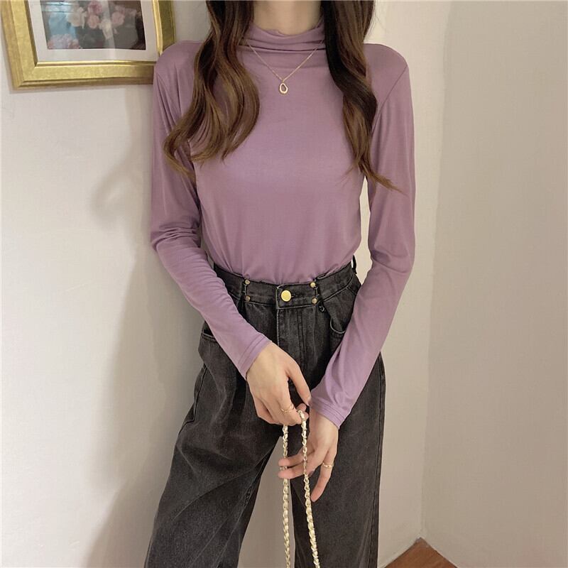 スプリングオータムスリム薄手ソリッド カラーTシャツ トップス レディース ロング 春物 秋物 ソリッドカラー misskkl32541879989