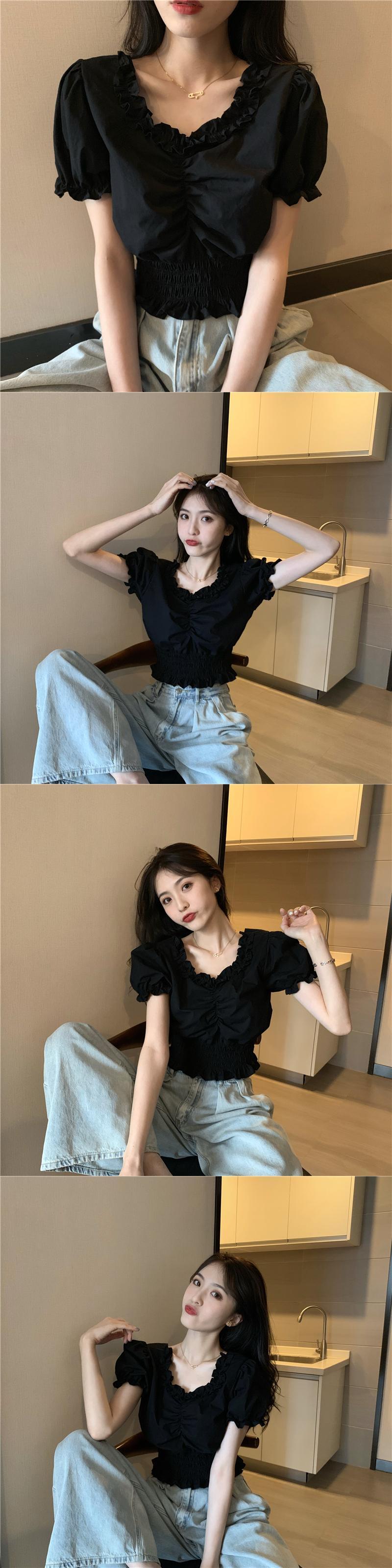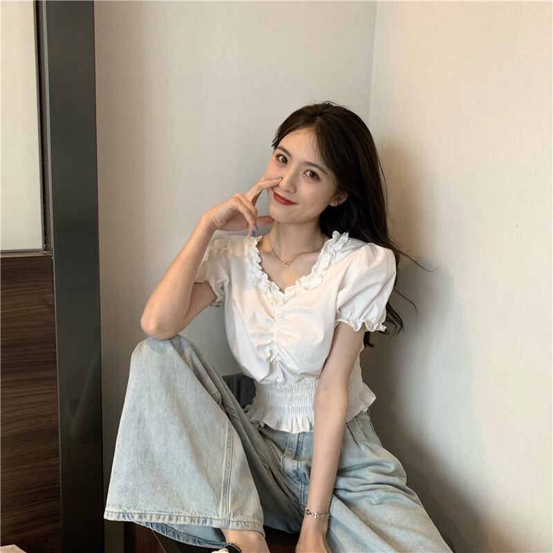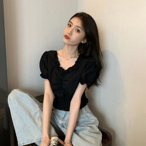 スリーブトップス ショートサマーウェストスタンダードシャツ レトロ 夏物 misskkl75703920492