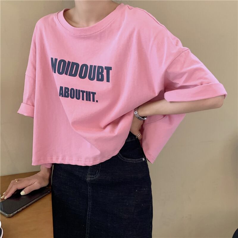 レッドTシャツ ハイウェストウェストショートトップス ドレス サマールーズ コットン 夏物 ピュア misskkl17038527625