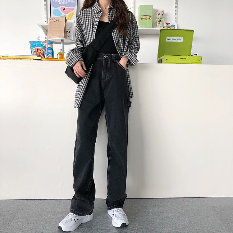 ブラックパンツ スプリングハイウェストウェストルーズ薄手ジーンズ 春物 misskkl63911686297