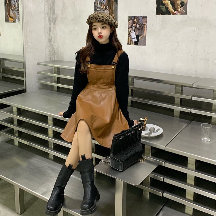 色:ストラップレザースカートワンピース,ベースセーターシングル