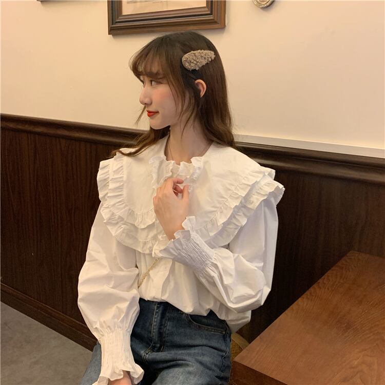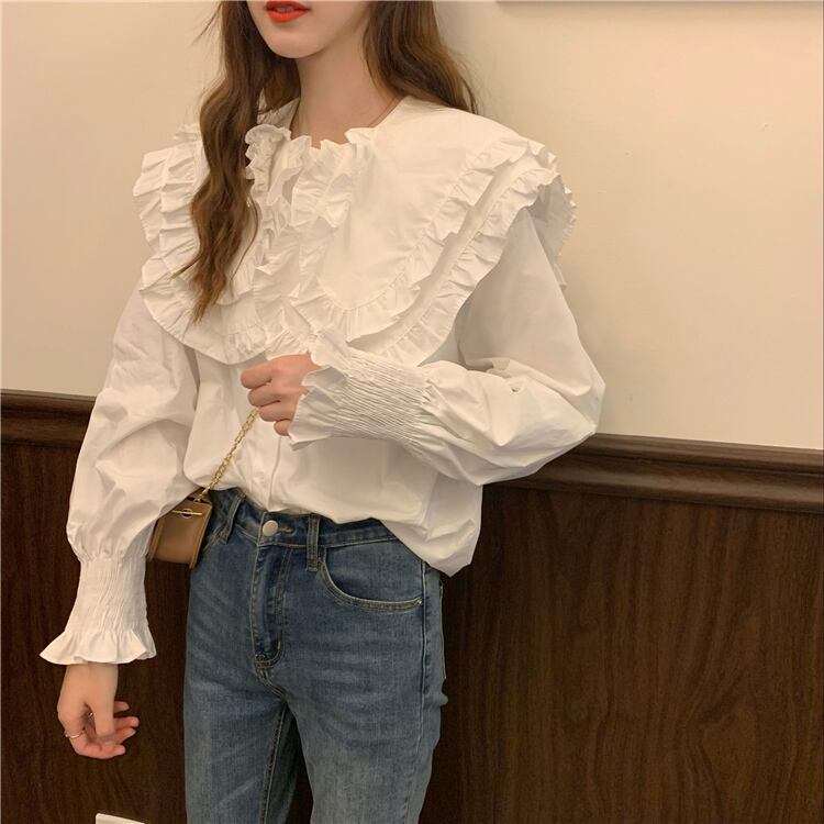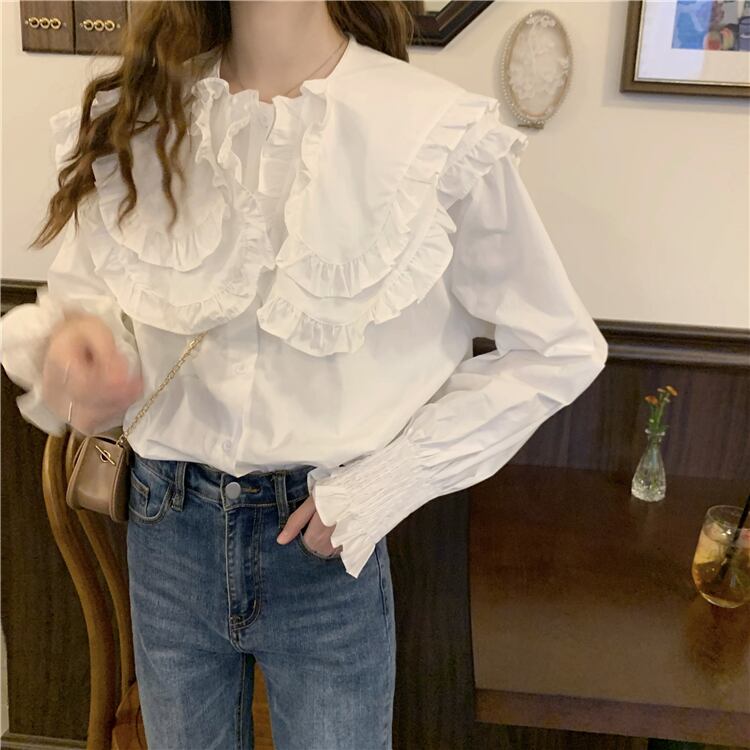 カラーシャツ スリーブトップス スプリングオータム 大人ガーリー スウィート キュート カジュアル 春物 秋物 misskkl49040945375