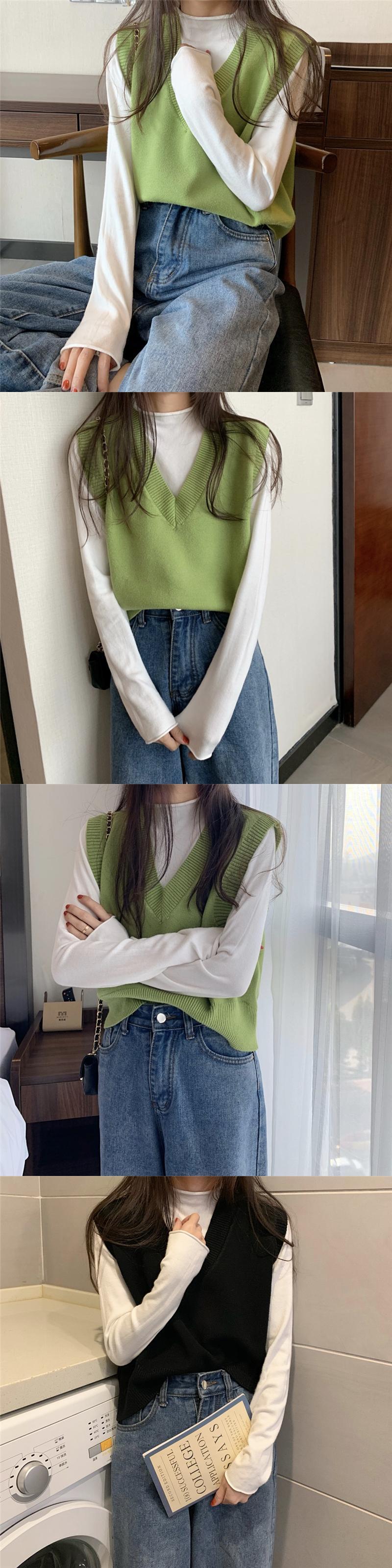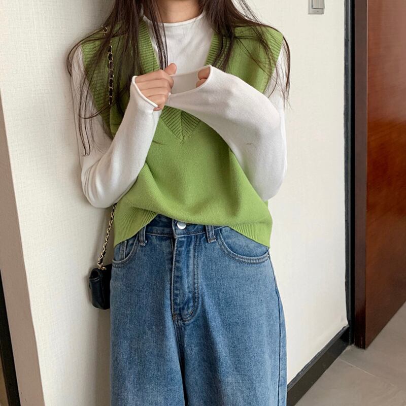 スプリングルーズショートVネックカラーノースリーブニットトップス 春物 ピュア misskkl37450424428
