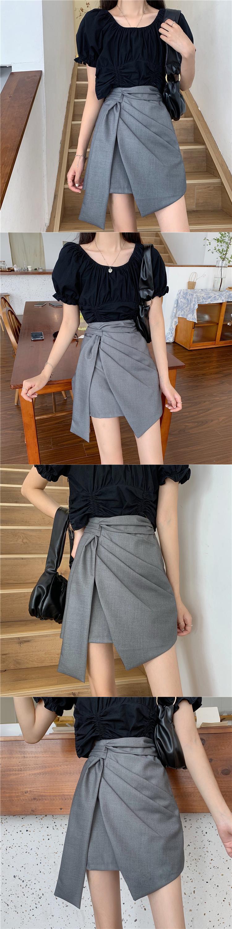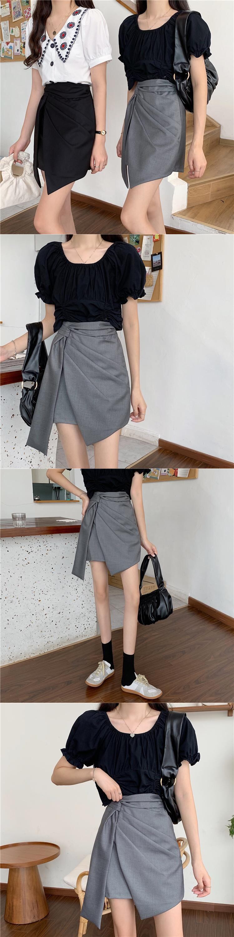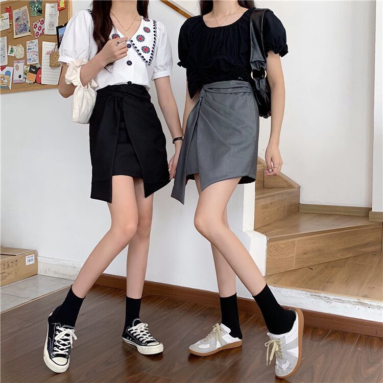 スプリングハイウェストウェスト薄手Aラインスカート レッド 春物 misskkl81756528143