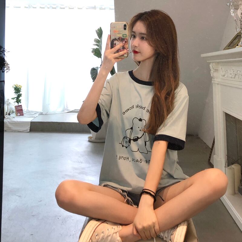 サマーカラーラウンドネックTシャツ トップス ドレス 大人ガーリー スウィート キュート カジュアル 夏物 Oネック misskkl18406775798
