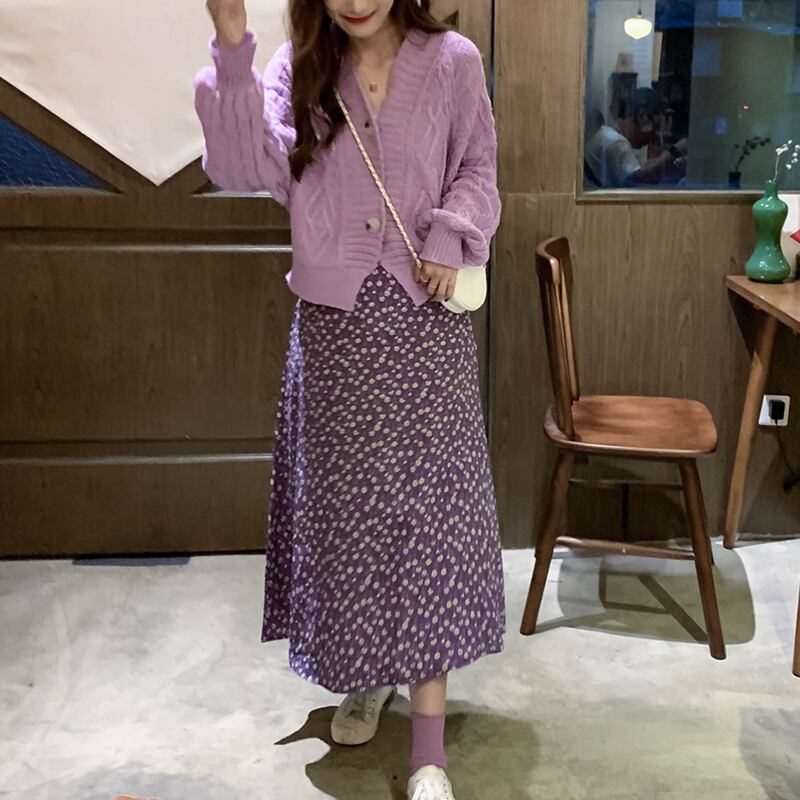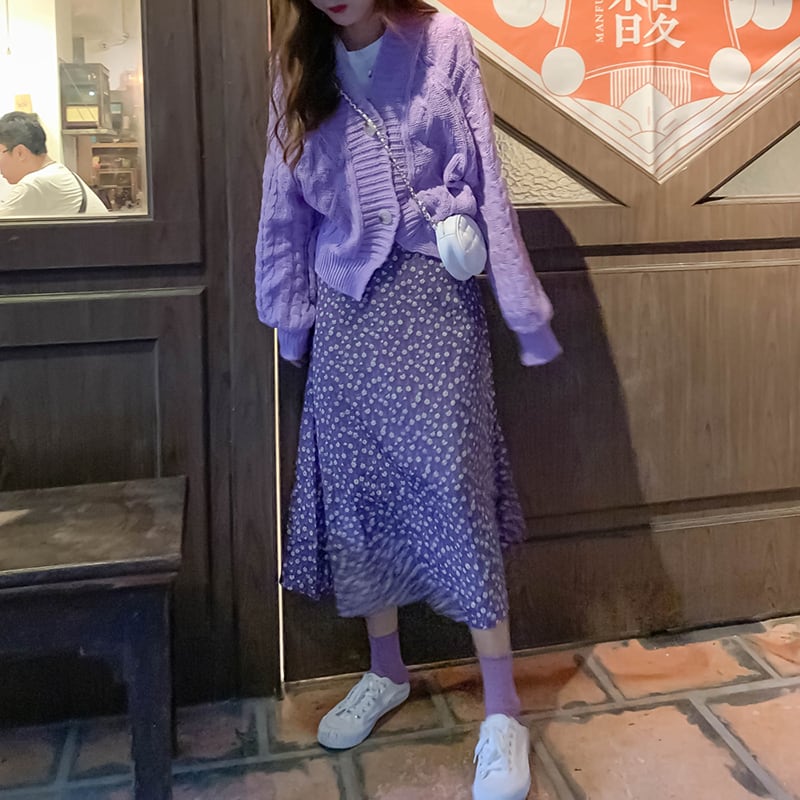 色:ニットカーディガンワンピース,フローラルスカートワンピース