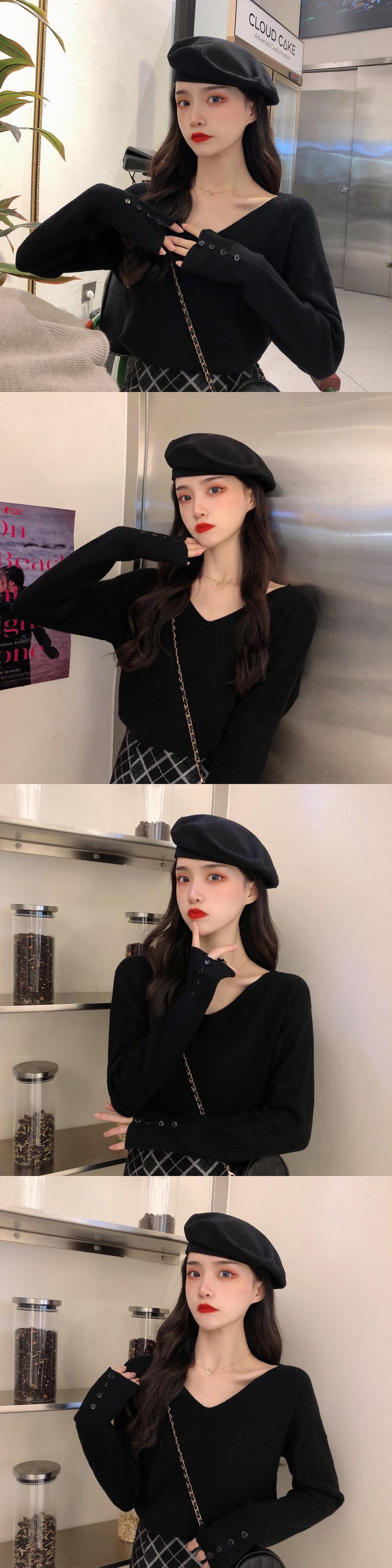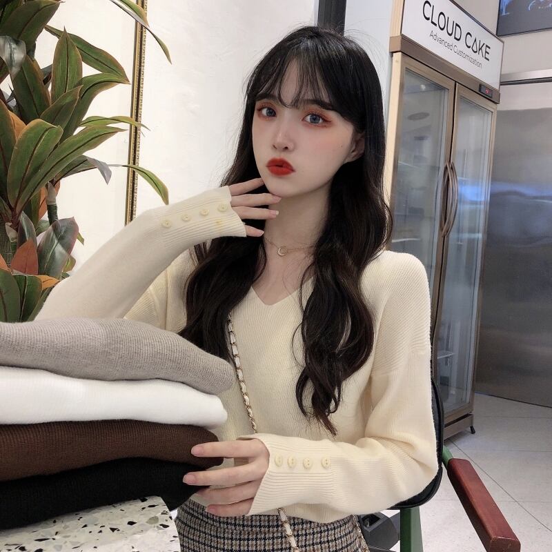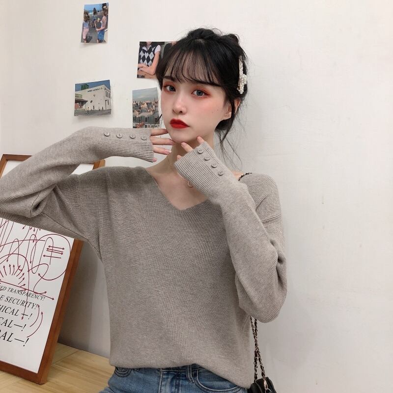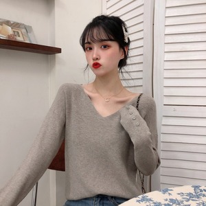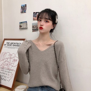 スプリングオータムルーズニットセーター ロング 春物 秋物 Vネック misskkl82679981537
