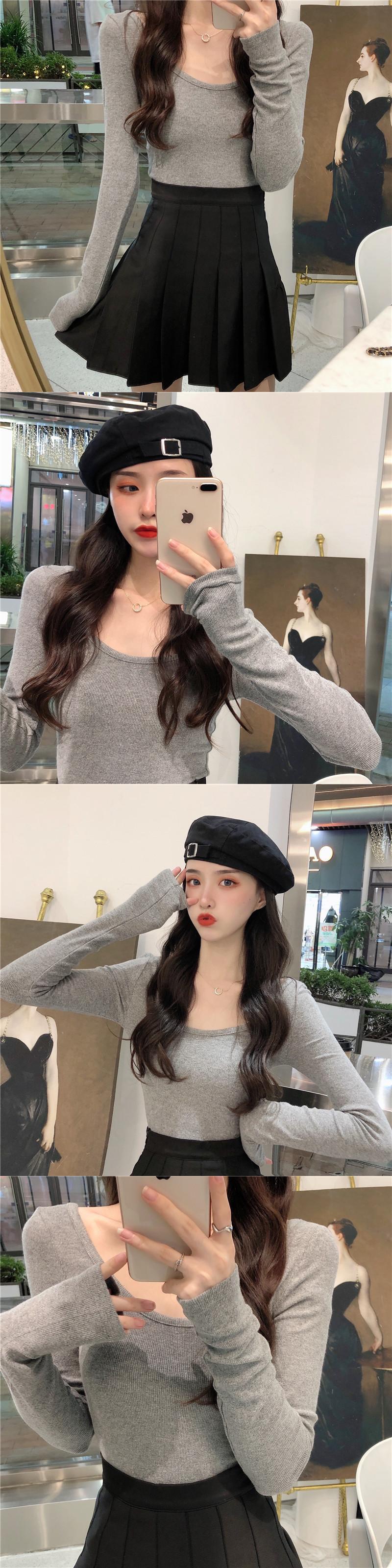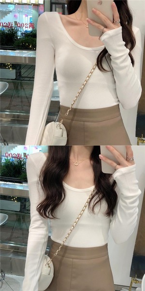 スプリングオータムスリムラウンドネックセーター トップス レディース ロング 春物 秋物 Oネック misskkl95482953591