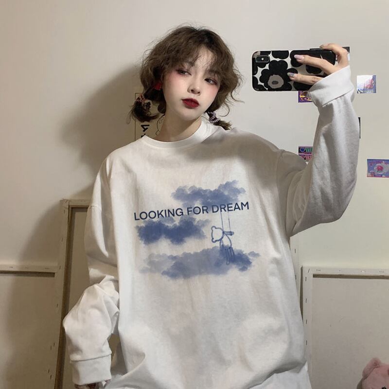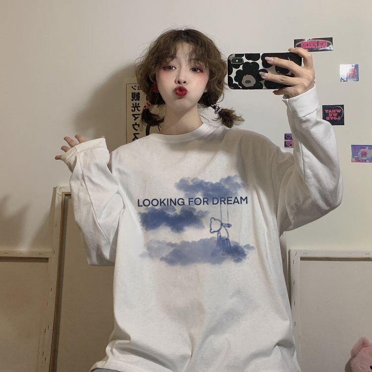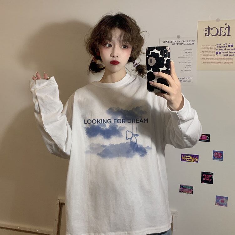 ホワイトスプリングオータムウィンタールーズTシャツ ロング 春物 秋物 冬物 misskkl78708767451