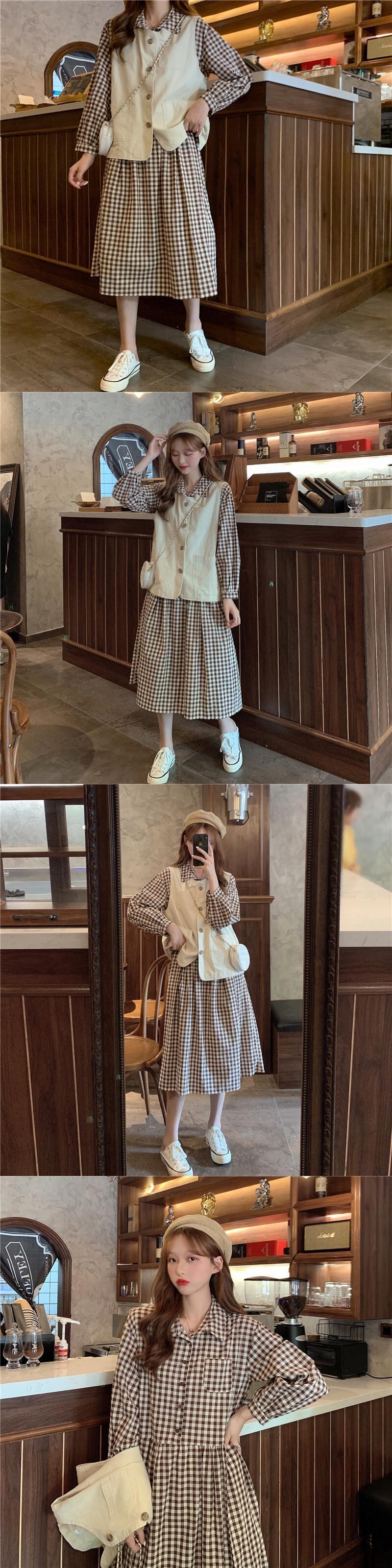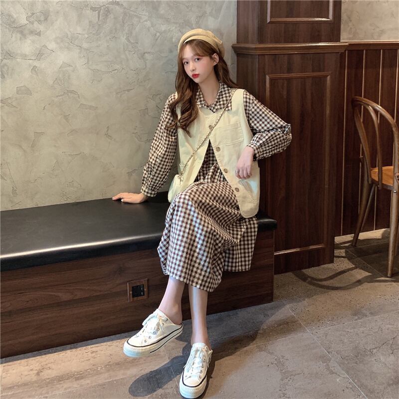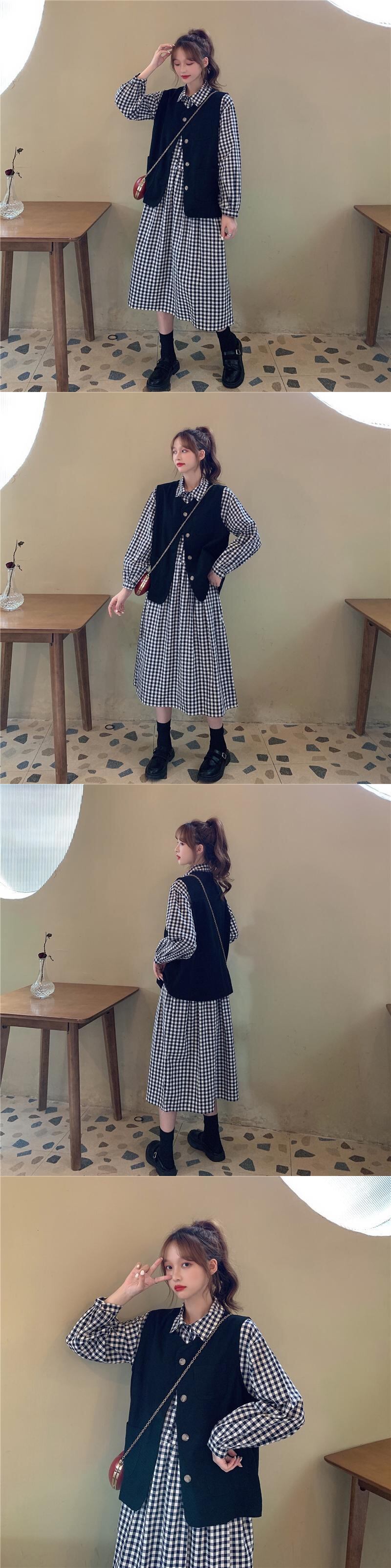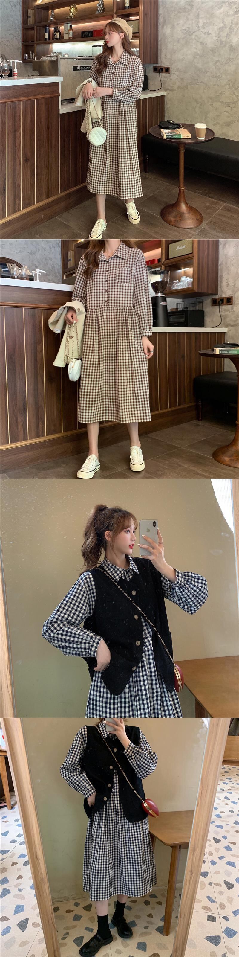 格子柄ドレス オータムウィンタースタイルスリムスカート ロング スプリング 春物 秋物 冬物 misskkl99586297421